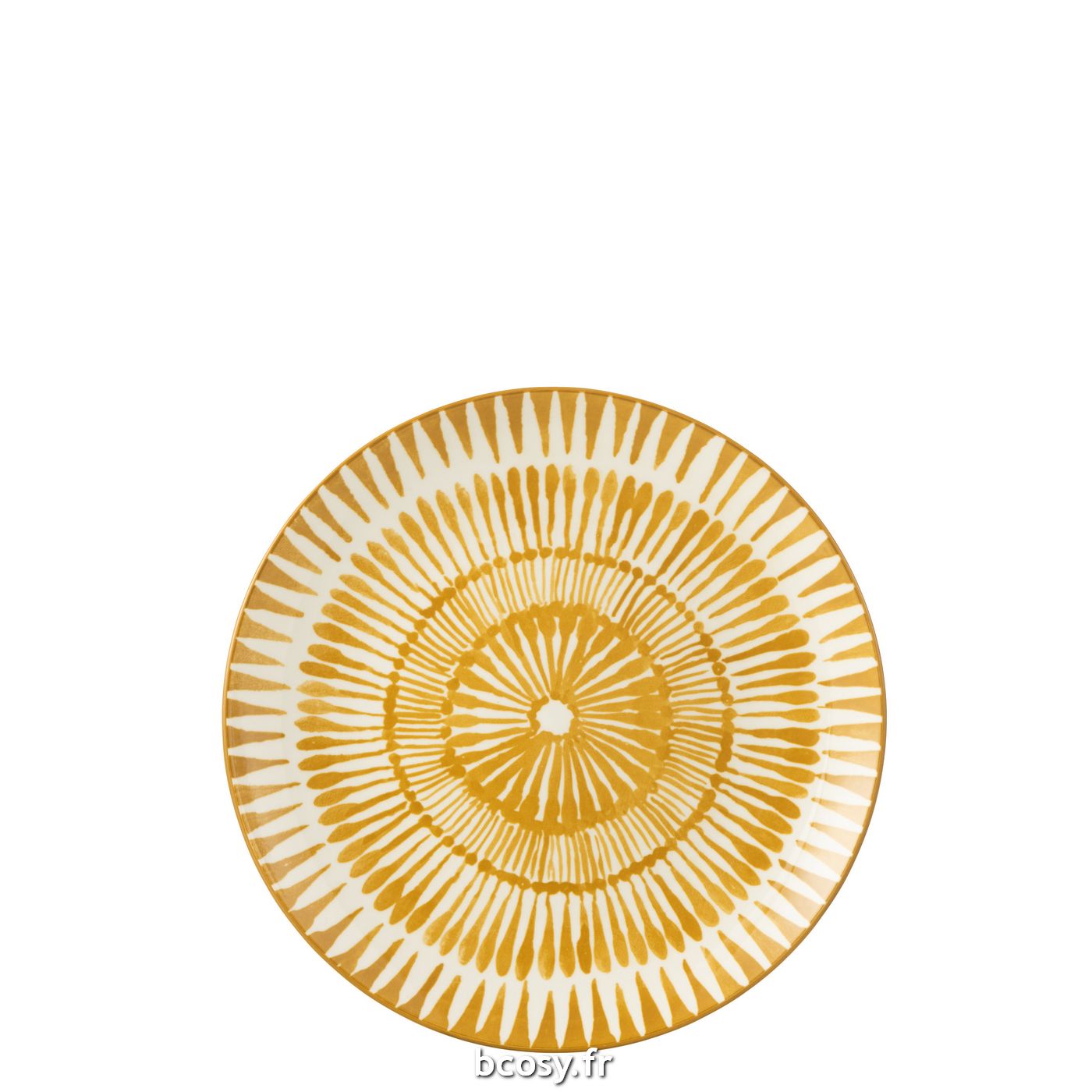 J-Line by Jolipa Assiette Jam Porcelaine Blanc/Ocre