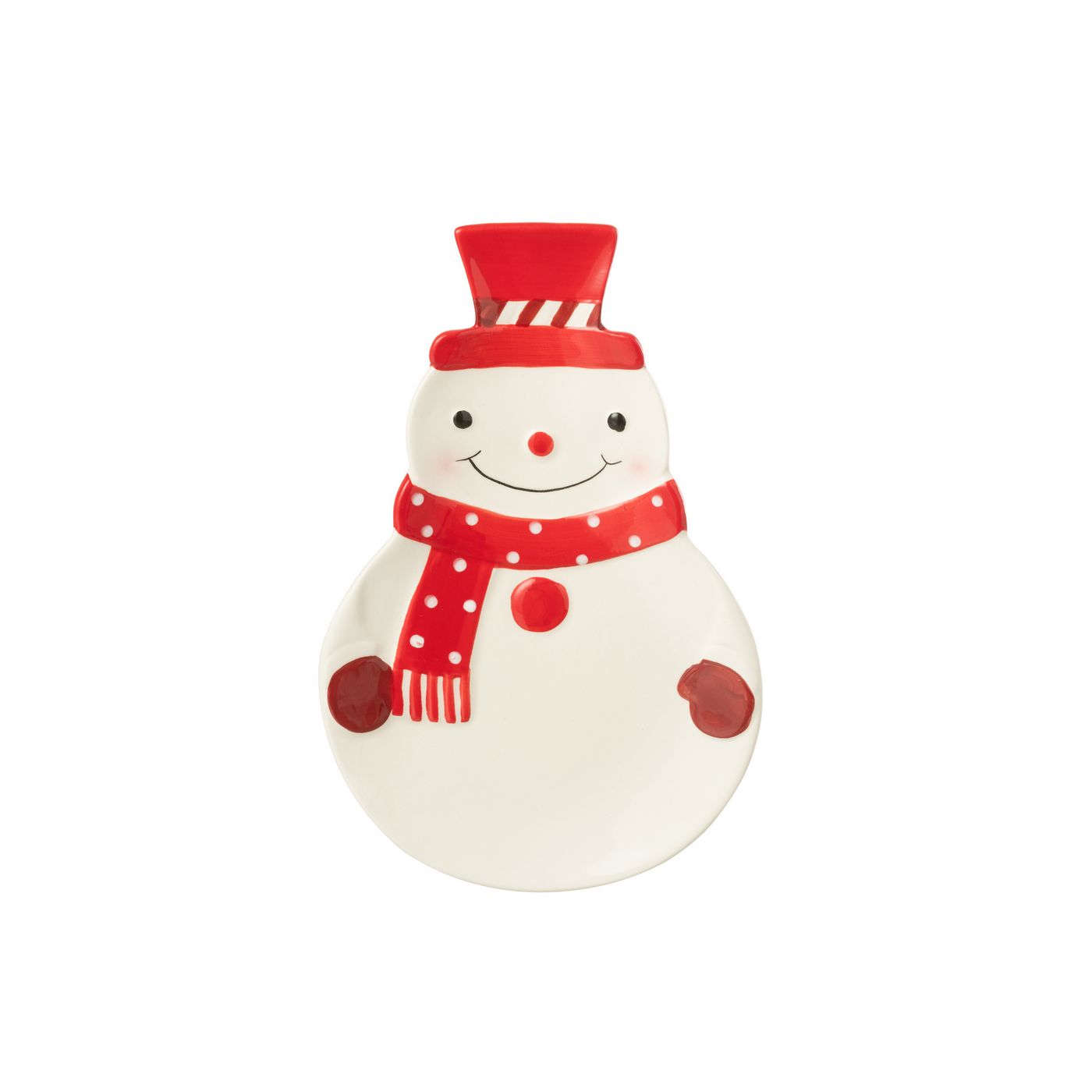 J-Line Assiette Bonhomme De Neige Dolomite Rouge Noël-Blanc L18xB27xH3 cm 55687