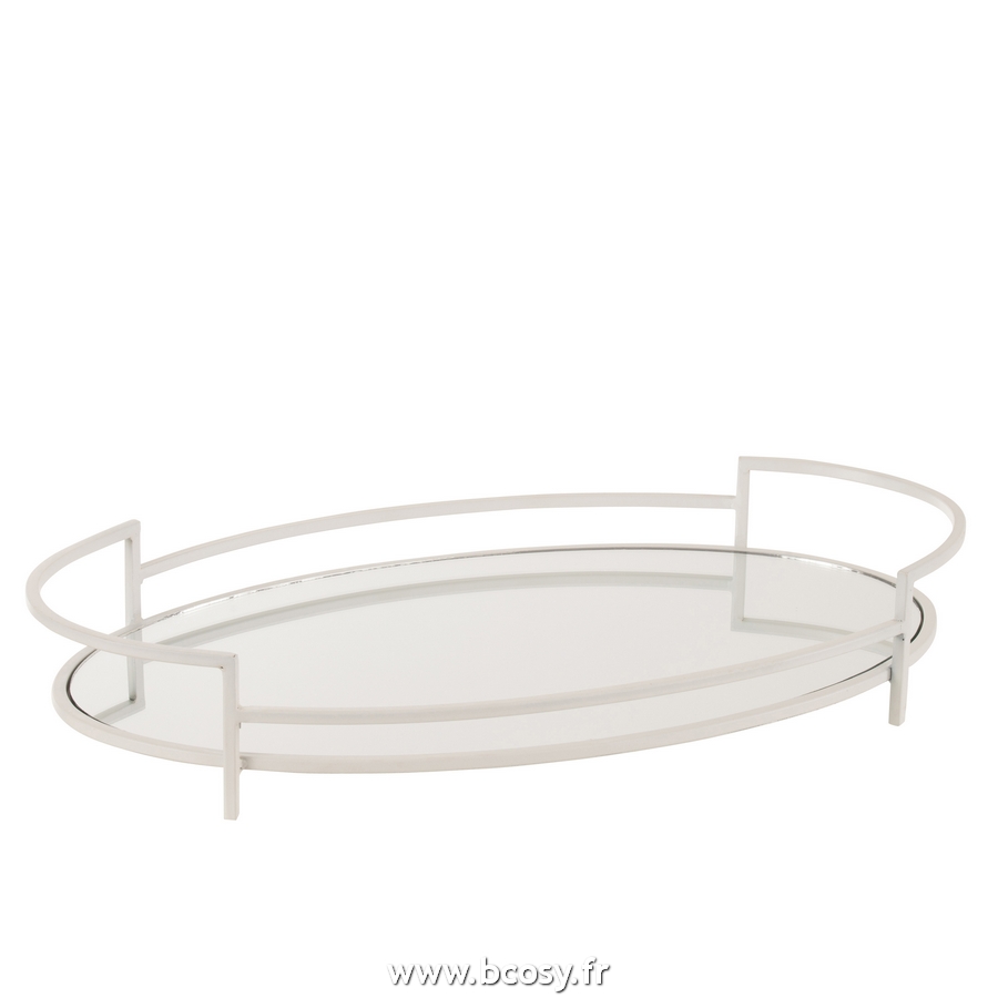 Jolipa Soucoupe Ovale Avec Miroir Metal Verre Blanc