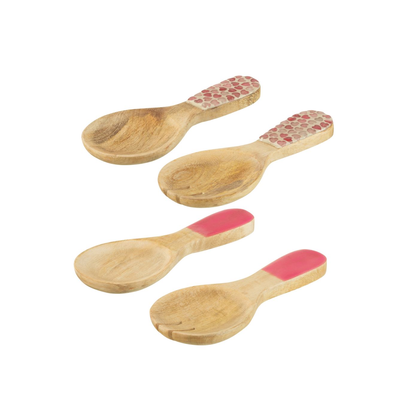 J-Line Set 2 Couvert A Salade Bois De Manguier Rose L20xB9xH3 cm 54920 Assortiment de 2 pcs