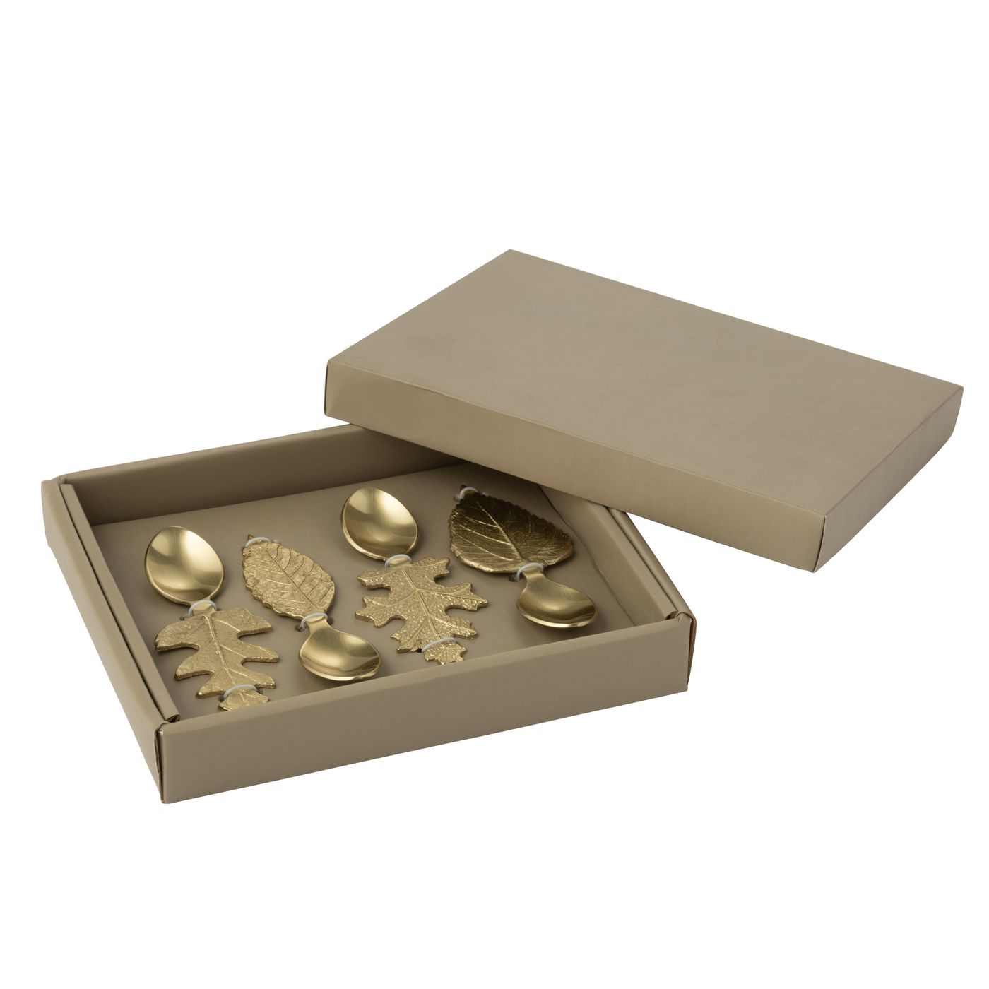 J-Line by Jolipa Boite De 4 Cuillère Feuilles Acier Inoxydable Doré