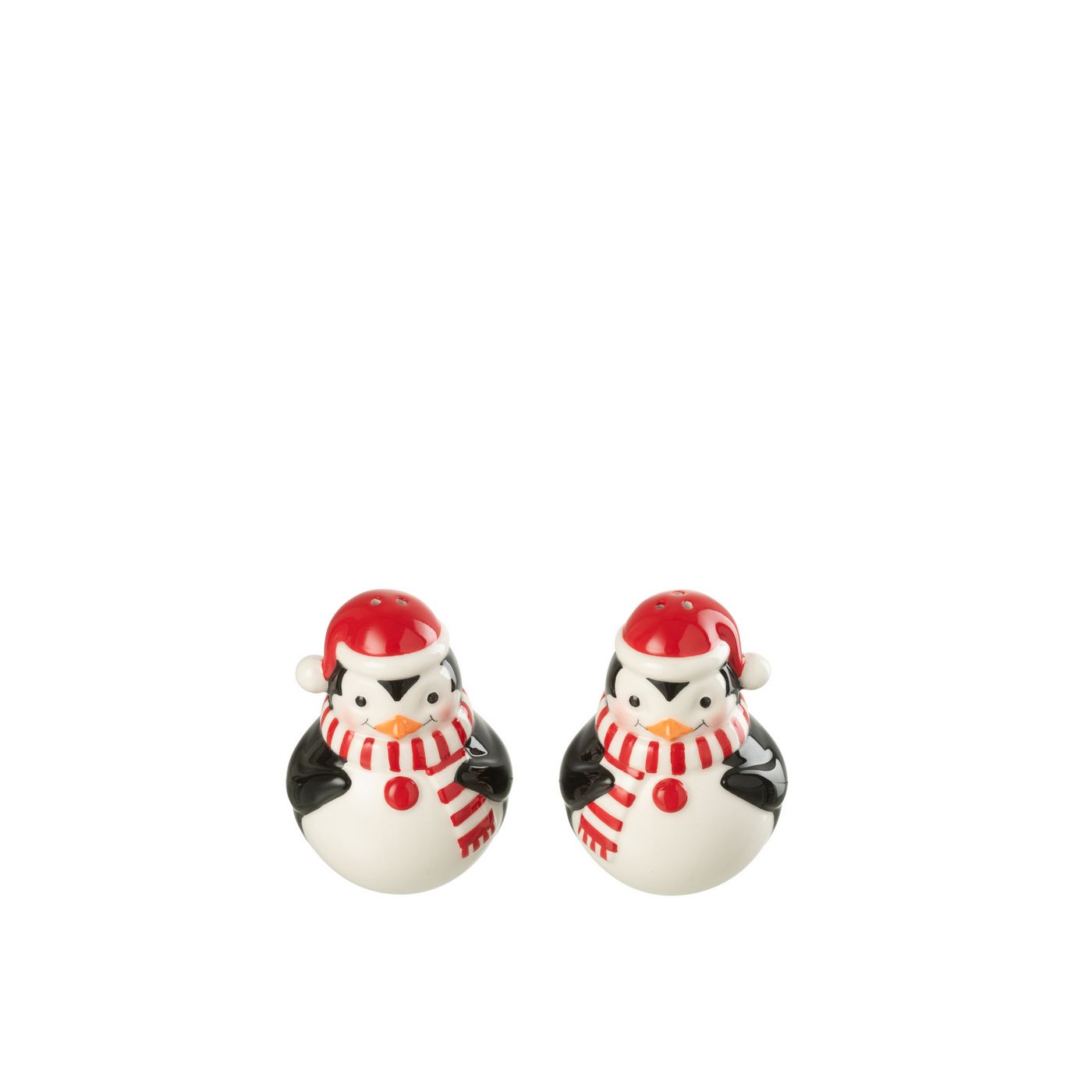 J-Line Sel-Poivre Pingouin Dolomite Rouge Noël-Blanc L7xB6xH9 cm 55694