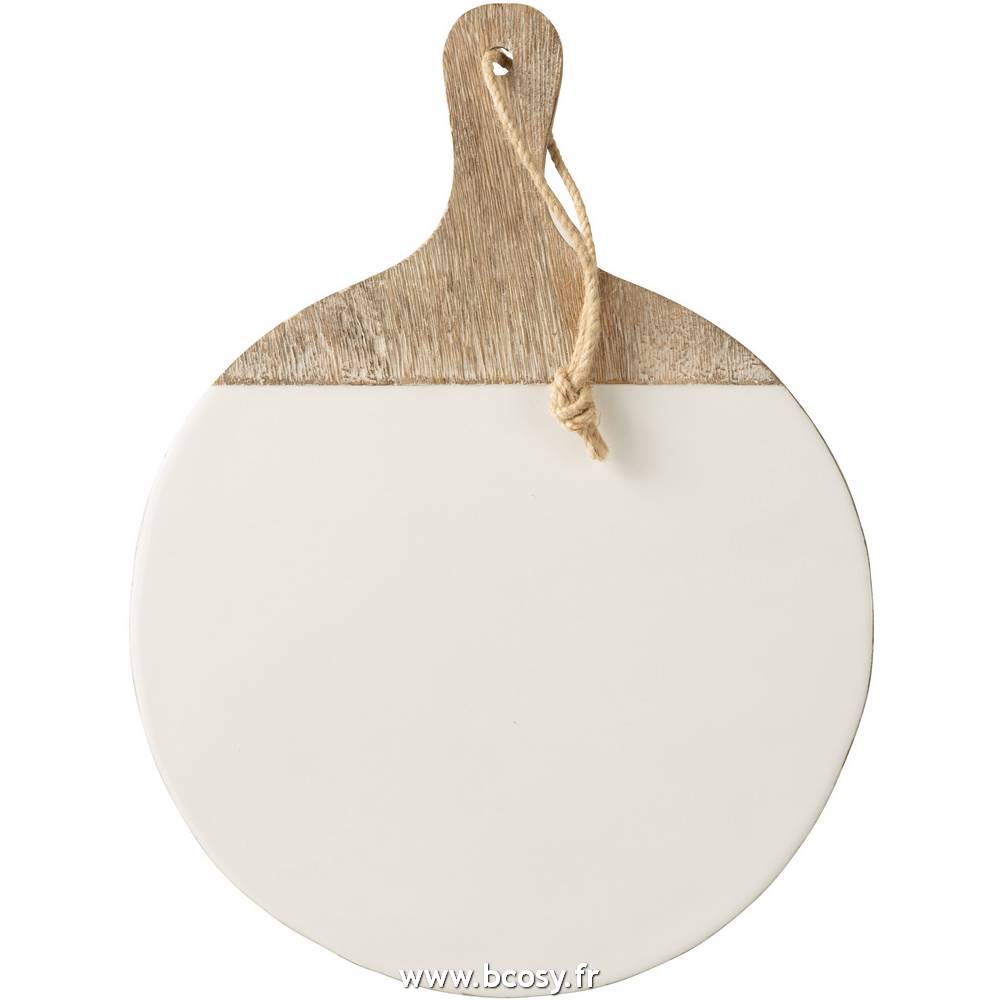 J-Line Planche Ronde Manguier Blanc White Wash L40xB30xH2 11017