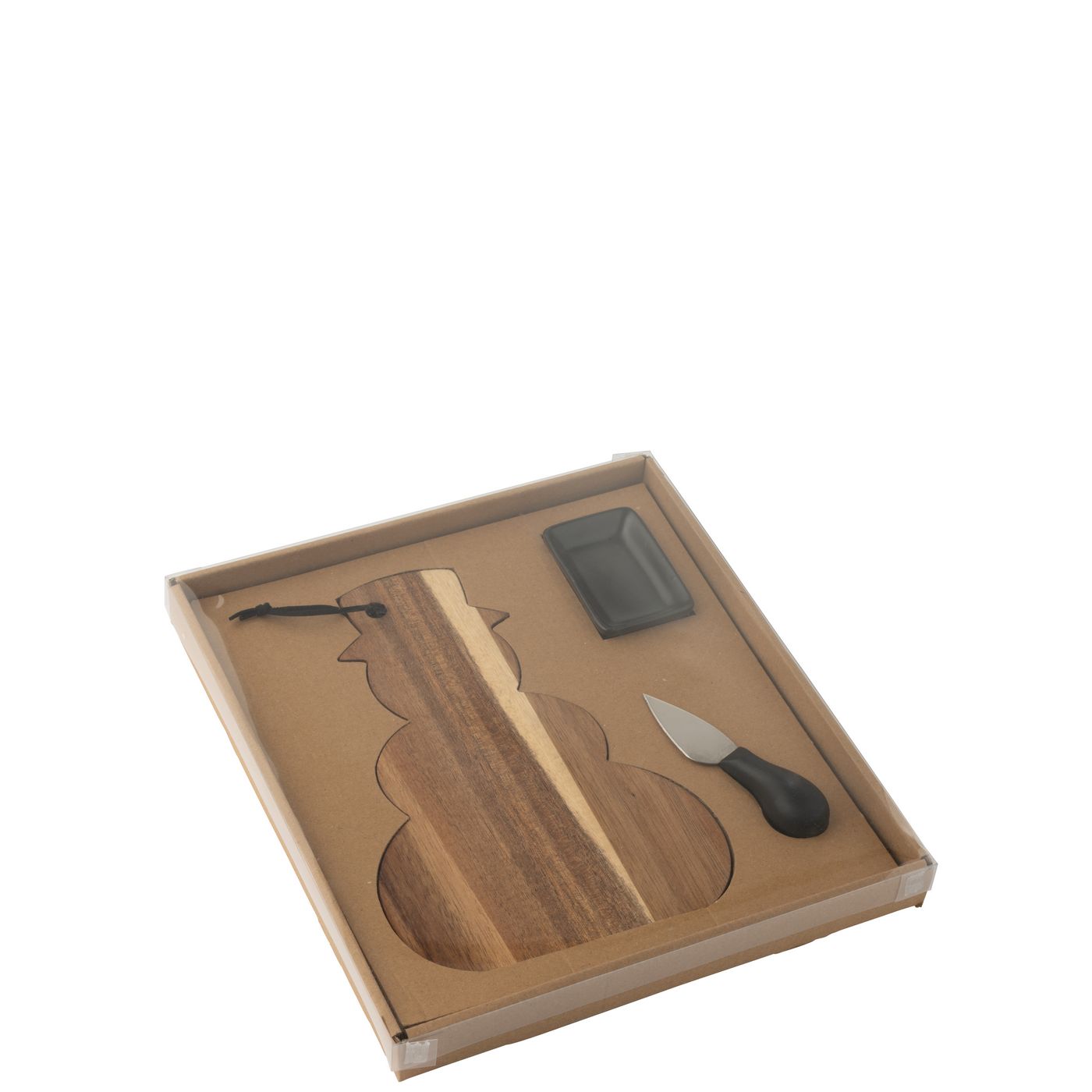 J-Line by Jolipa Plateau À Fromage + Couteau À Fromage Bonhomme De Neige Tableau Noir Naturel