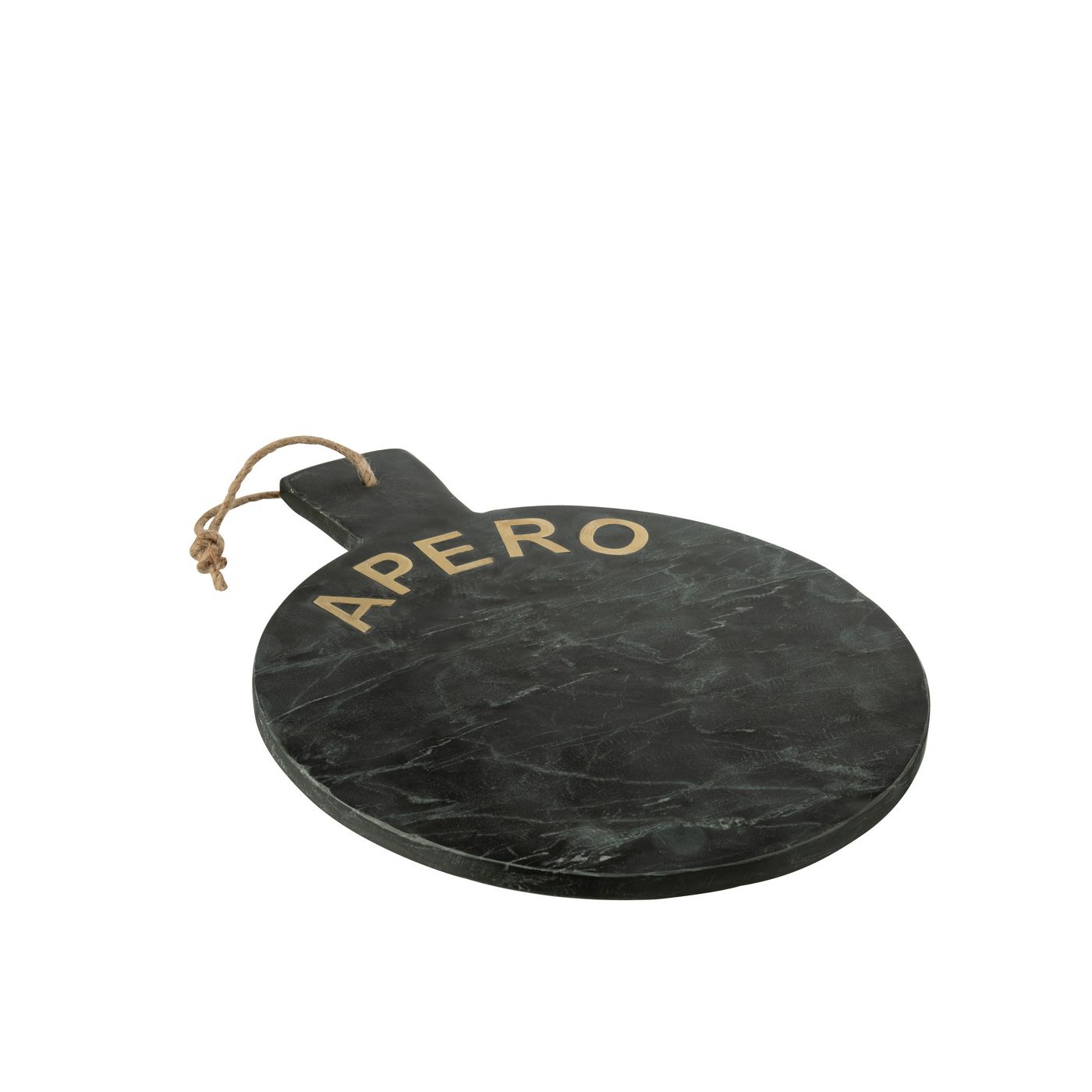 J-Line Plateau À Fromage Rond Marbre Noir-Doré L38xB30xH2 cm 59203