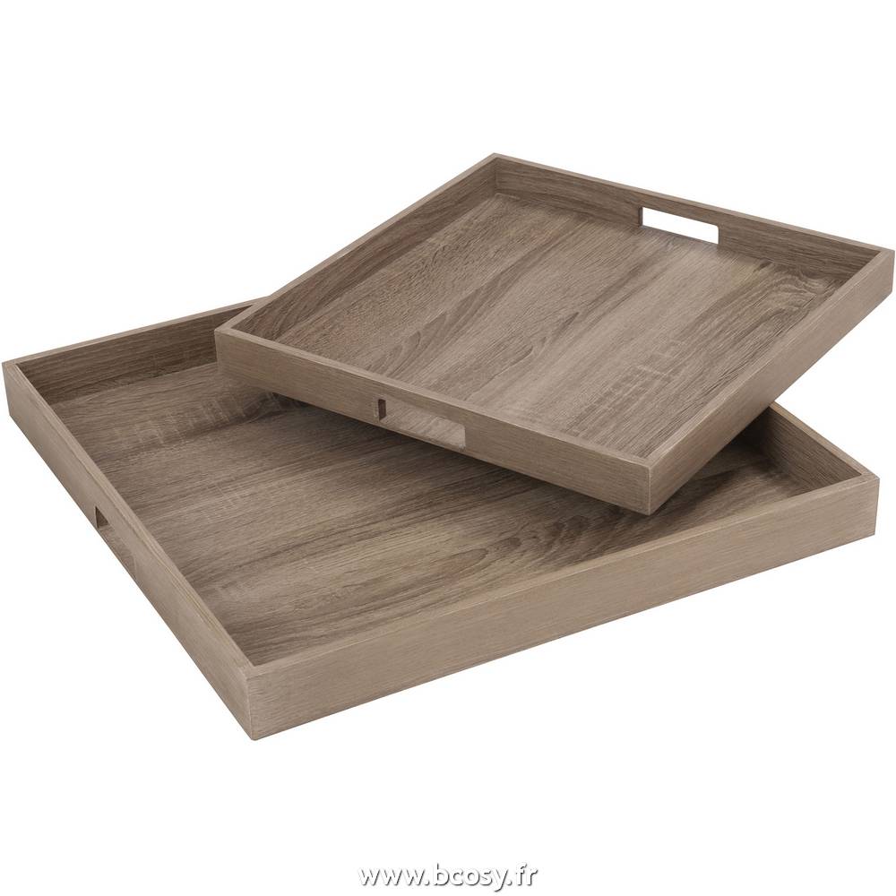 Jolipa Set De 2 Plateaux Carre Bois Naturel