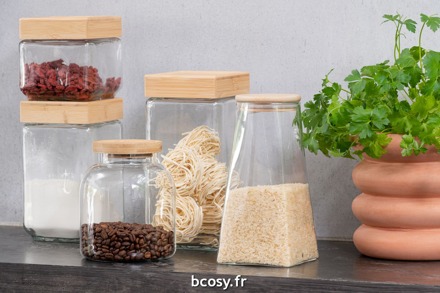 Jolipa Pot En Verre Brad Verre Bambou Transparent Naturel Extra Large
