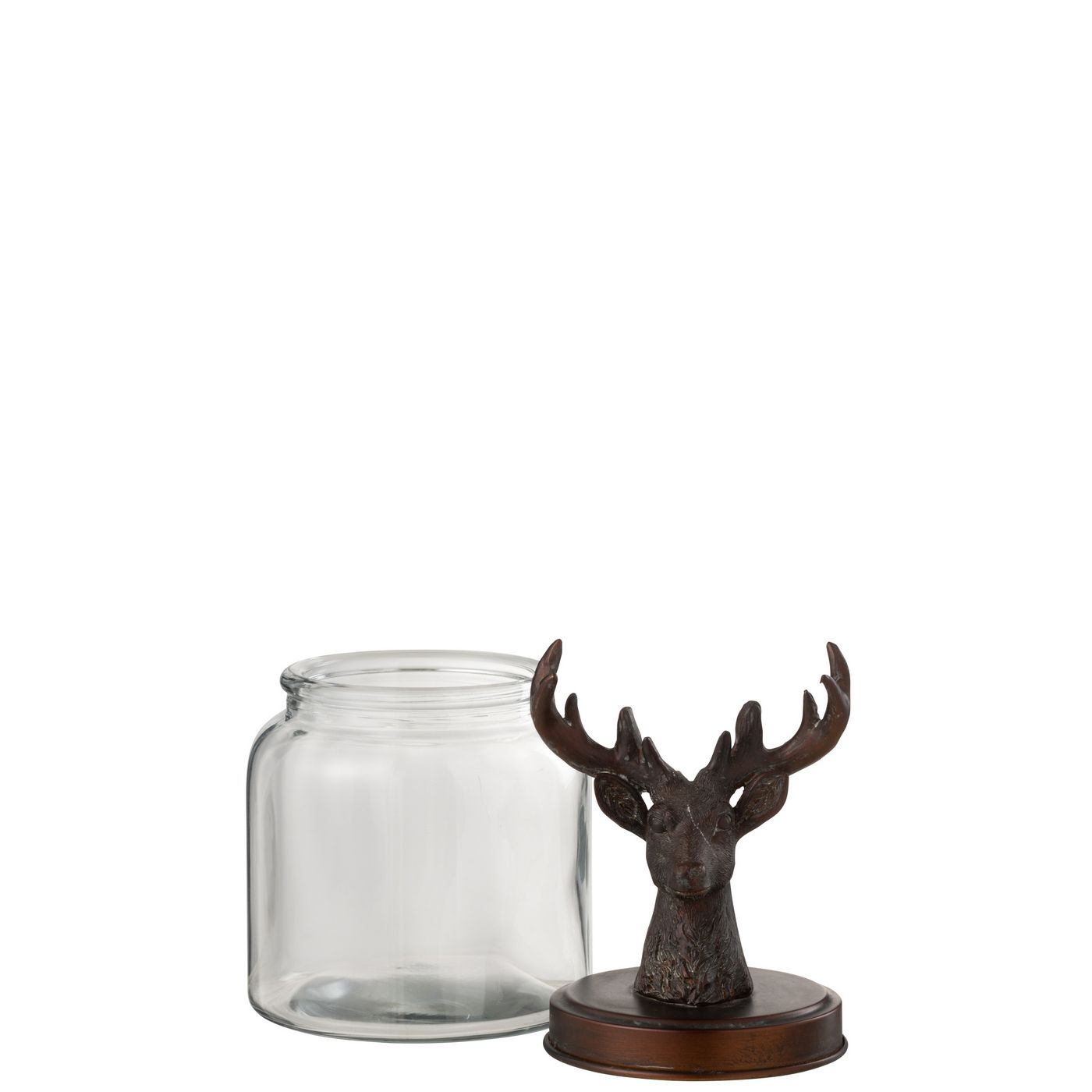 J Line Barattolo Cervo Vetro/Resina Trasparente/Bronzo Small