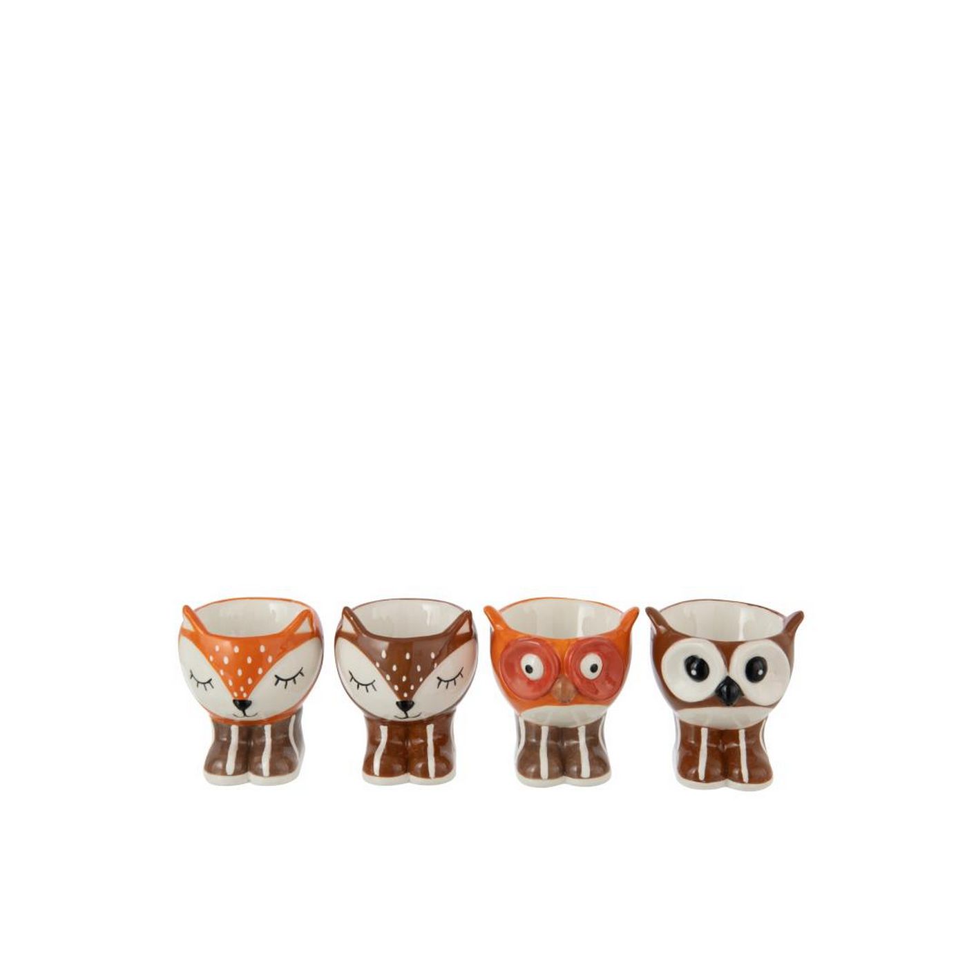 J-Line by Jolipa Coquetier Renard/Hibou Dolomite Marron/Camel Assortiment De 4