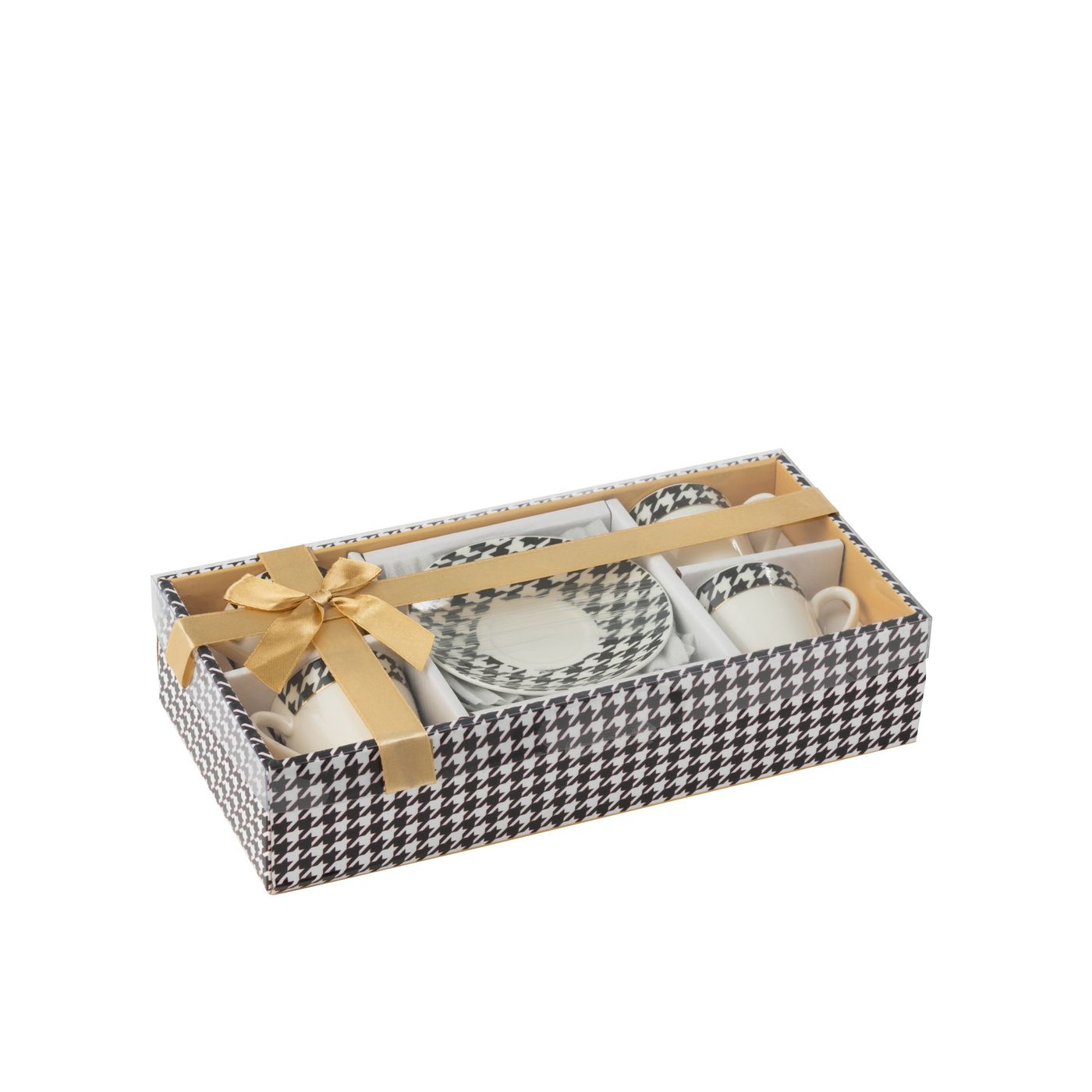 J-Line by Jolipa Boite De 4 Tasse + Sous Tasse Pied De Poule Porcelaine Blanc