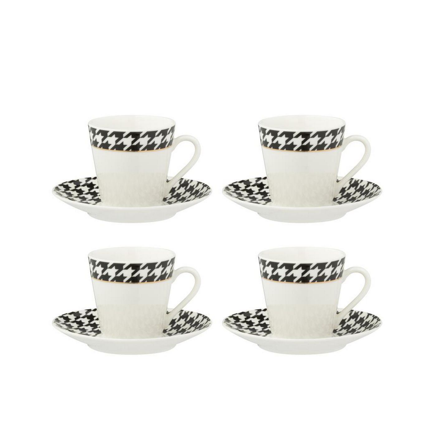 J-Line Boite De 4 Tasse - Sous-Tasse Pied-De-Poule Porcelaine Blanc L6xB11xH7 cm 58911