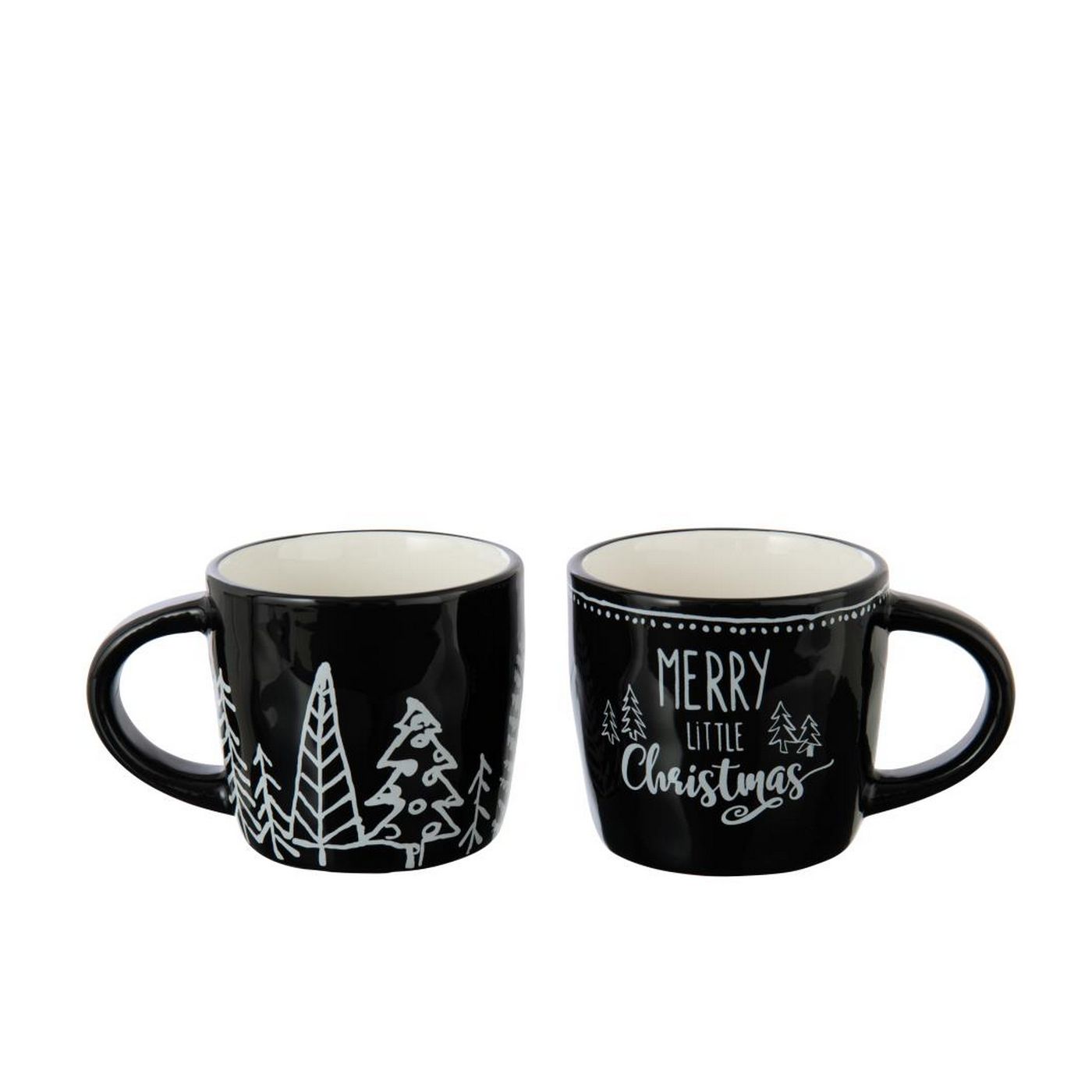 J-Line Mug Noël Dolomite Noir-Blanc L14xB10xH9 cm 59101 Assortiment de 2 pcs