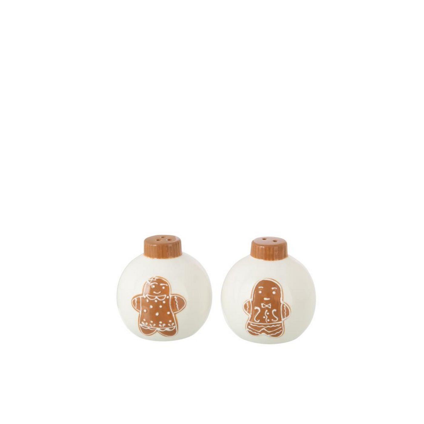 J-Line Sel-Poivre Boule De Noël Rond Dolomite Blanc-Caramel L8xB8xH8 cm 59138