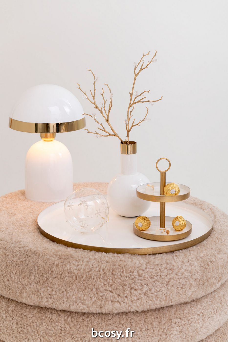 Jolipa Presentoir Nourriture Rond 2 Niveaux Metal Blanc Or