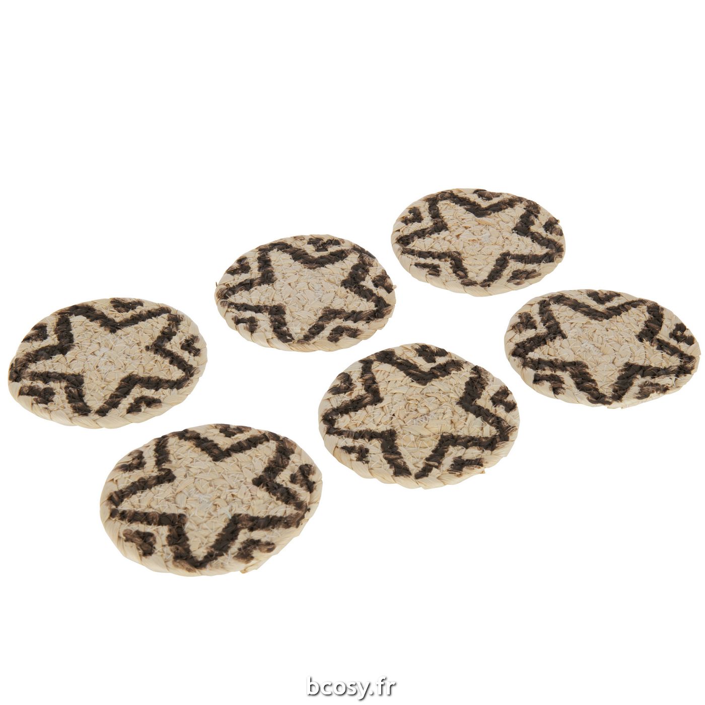 Jolipa Set 6 Sous Verres Rond Etoile Mais Naturel Marron