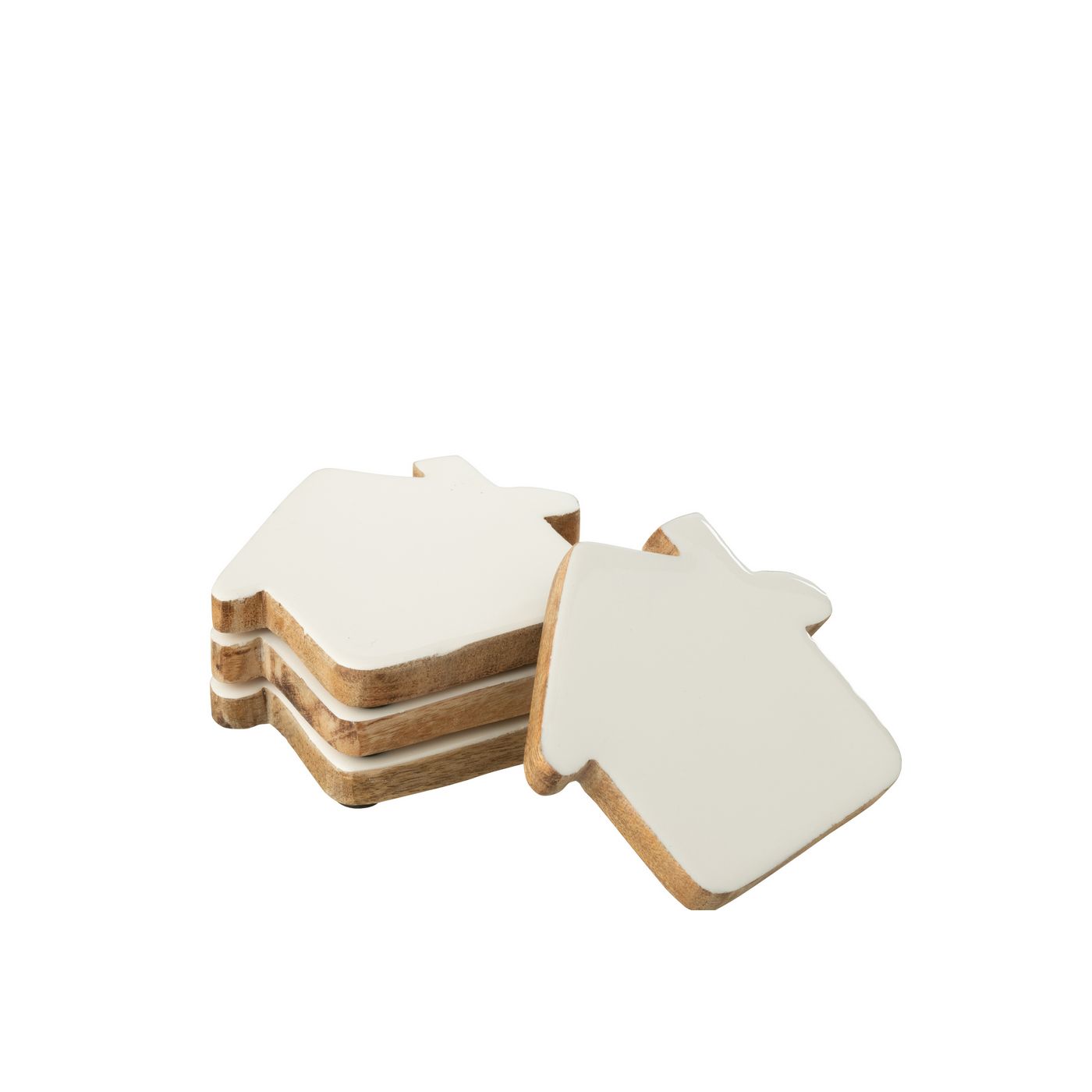 J-Line Set De 4 Sous-Verre Maison Bois De Manguier Blanc-Naturel L10xB10xH5 cm 55700