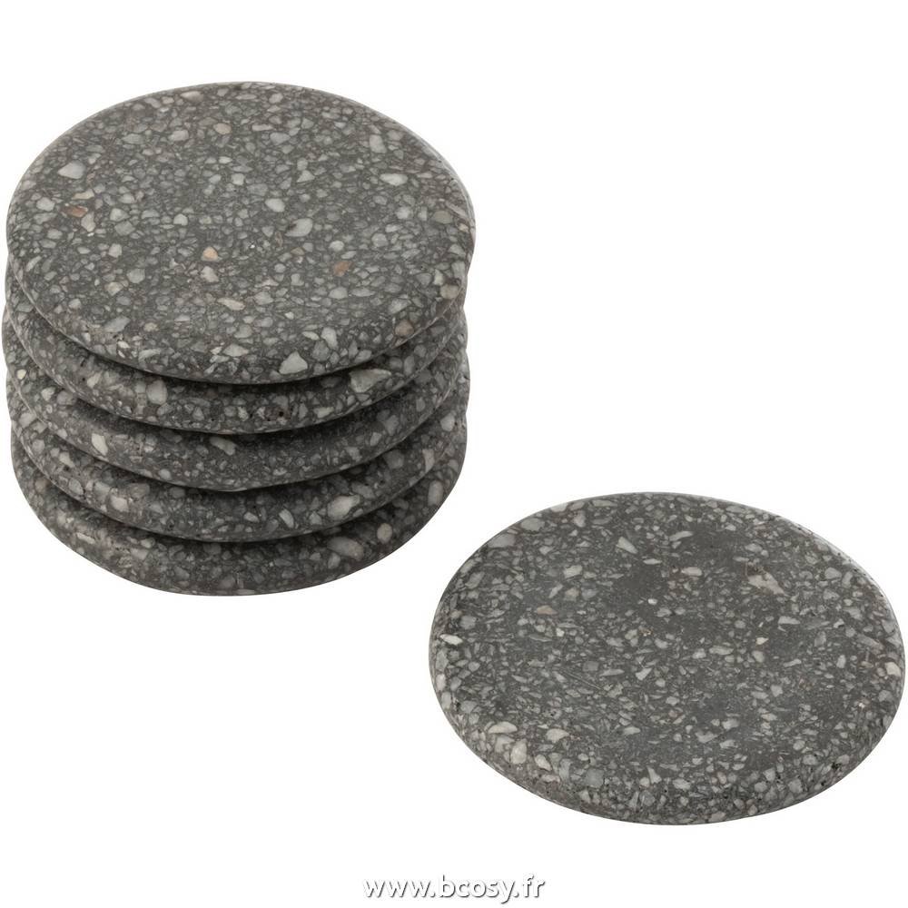 J-Line Set De 6 Sous-Verre Marbre Gris Ø10 7124