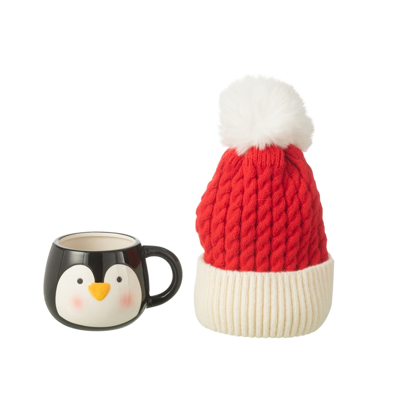 J Line Tazza Mug + Berretto Pinguino Scatola Regalo Ceramica Mix