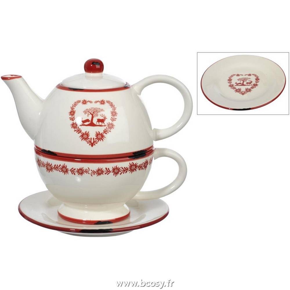 J Line Tea For One Ceramica Roj/Bla 18X12X15Cm