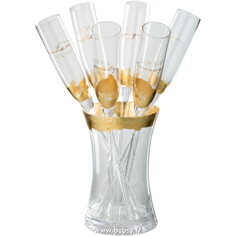 J-Line by Jolipa Verres A Champagne Dans Seau Verre Transparent/Or