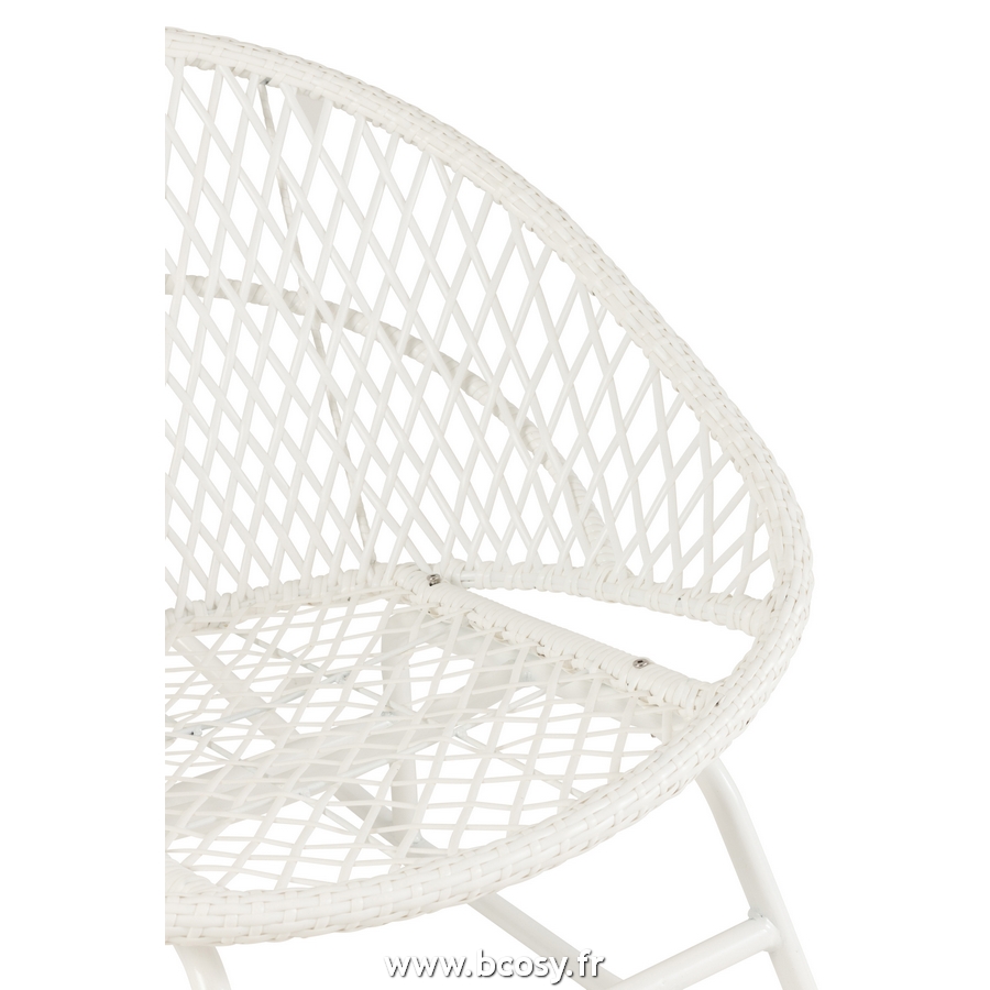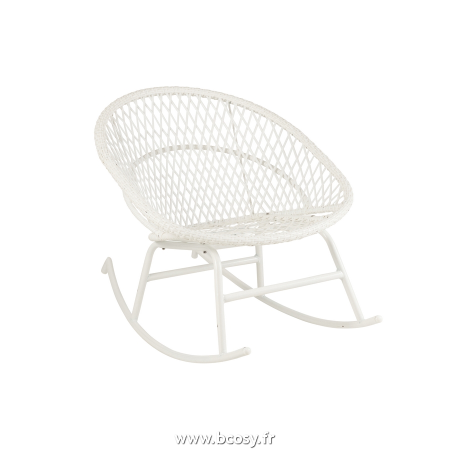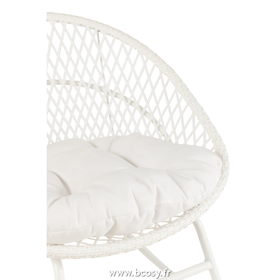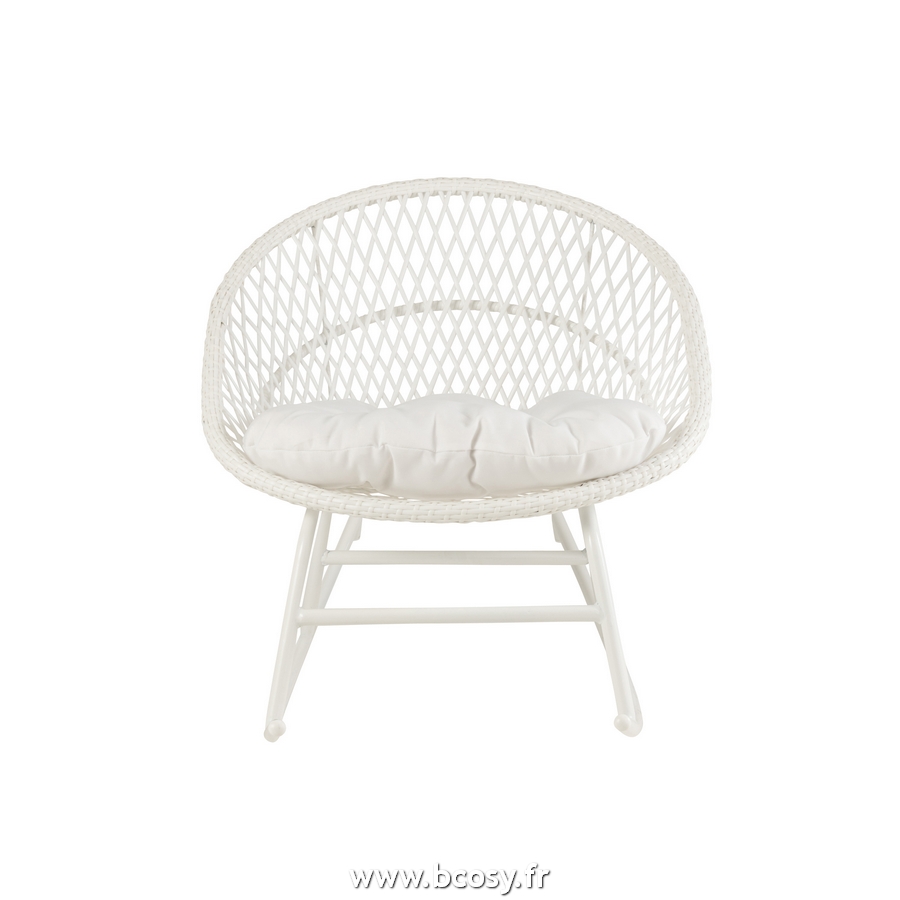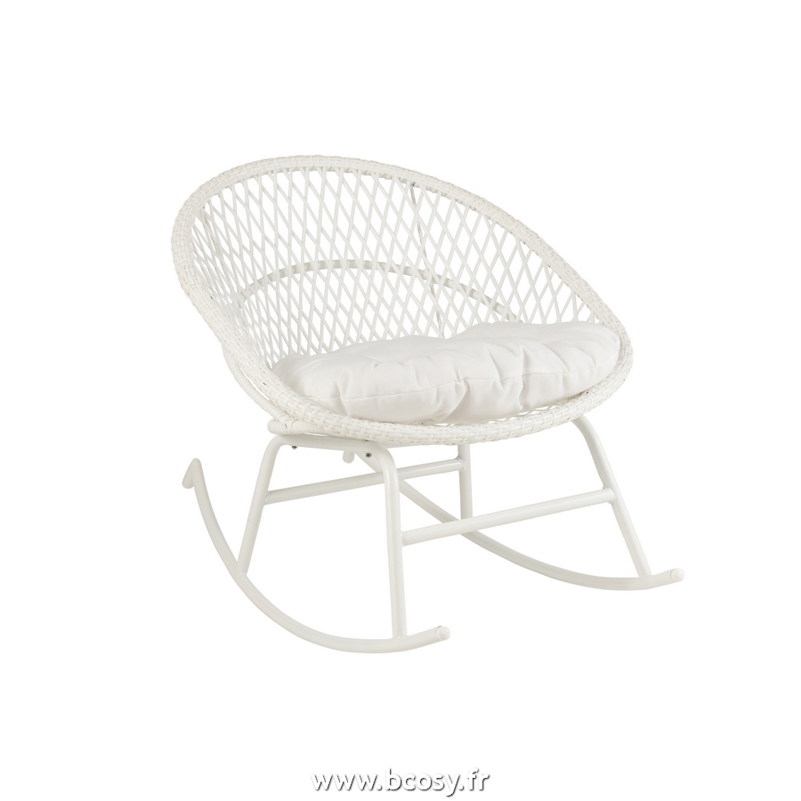 Jolipa Chaise A Bascule Coussin Zayo Metal Roseau Blanc