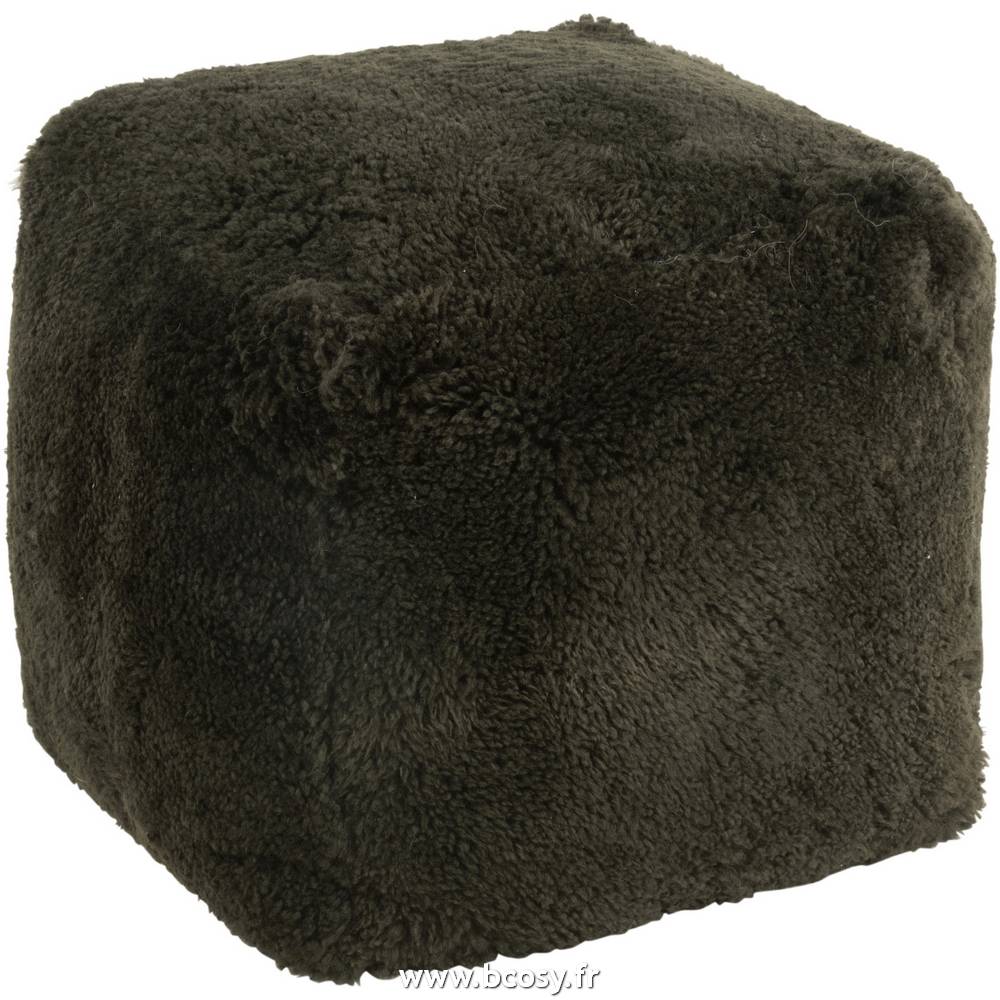 J-Line by Jolipa Pouf Carre Peau De Mouton Vert