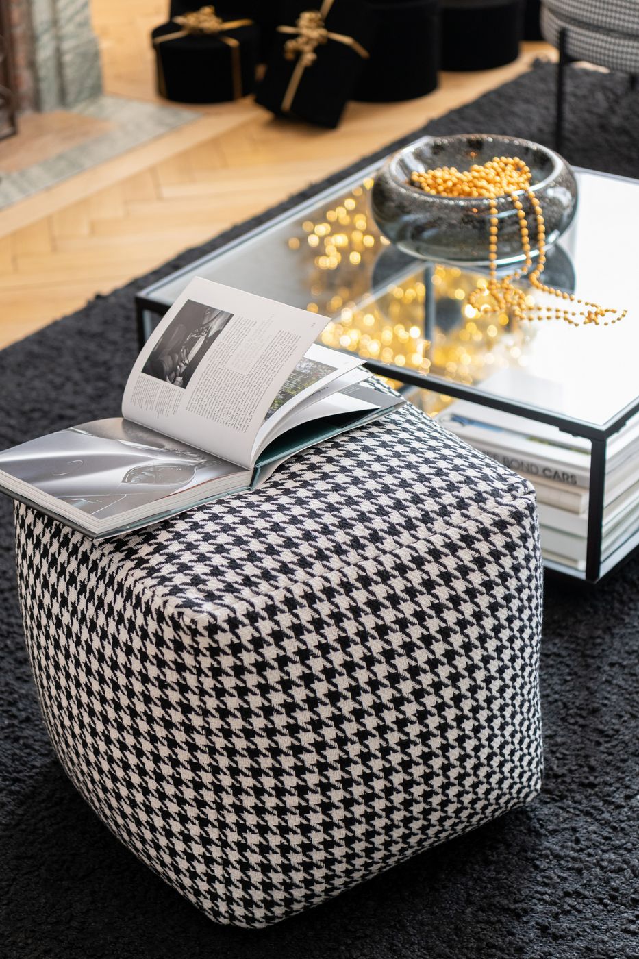 Jolipa Pouf Pied De Poule Coton Blanc Noir