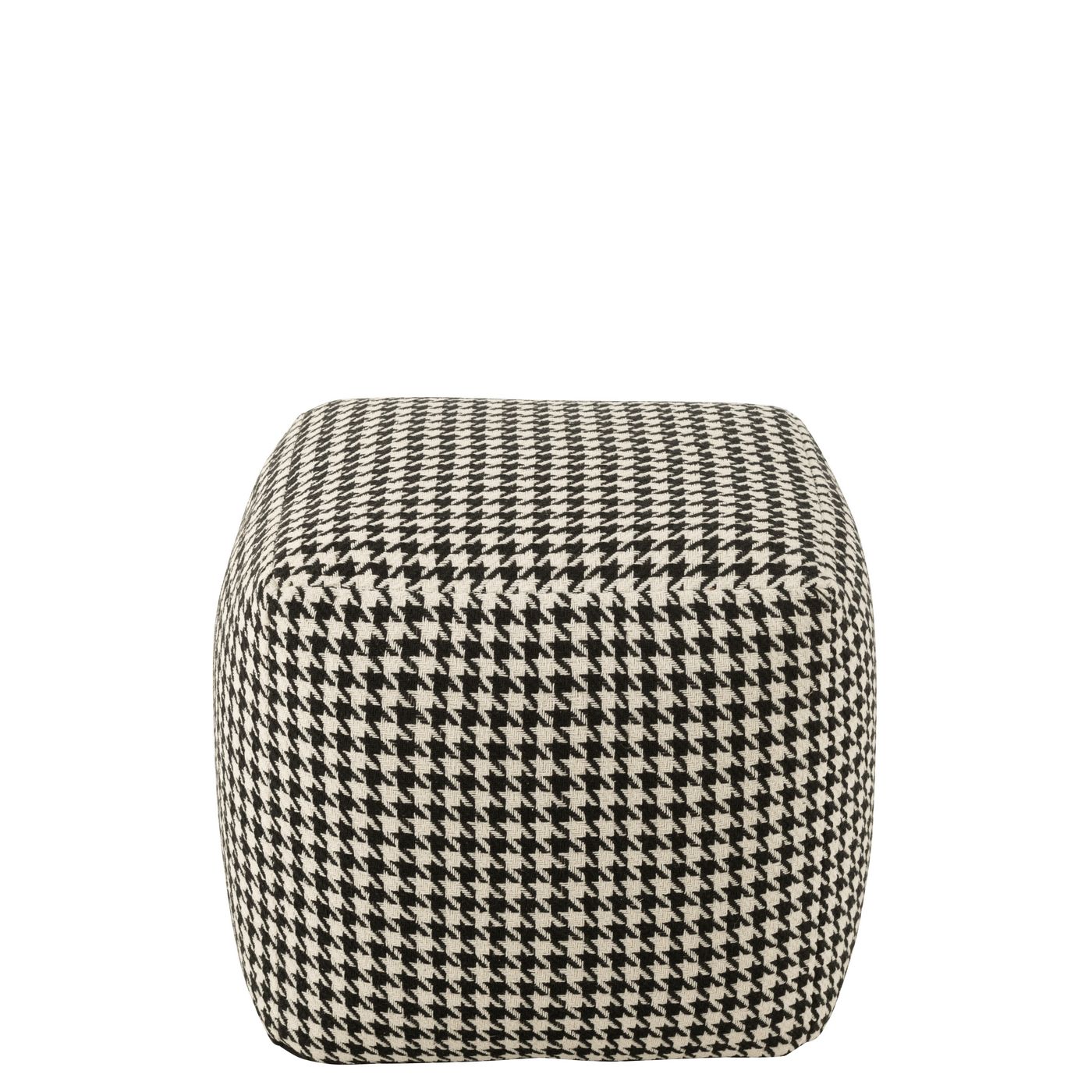J-Line Pouf Pied-De-Poule Coton Blanc-Noir L45xB45xH45 cm 56312