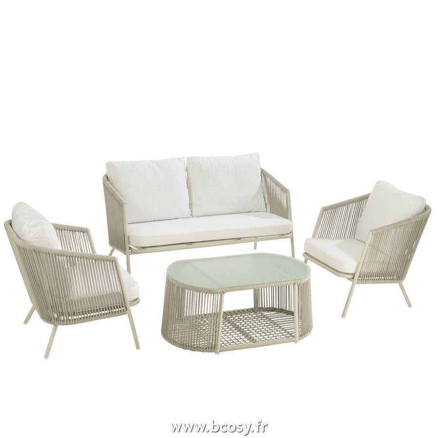 Jolipa Set Eli 4 Pieces Sofas Table Coussins Metal Corde Gris