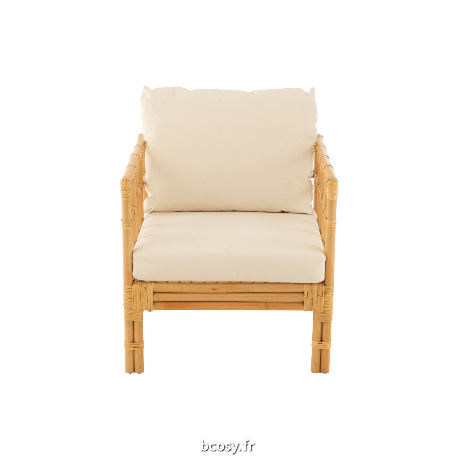 J-Line by Jolipa Fauteuil Elise+Coussin Rotin/Textile Naturel/Blanc