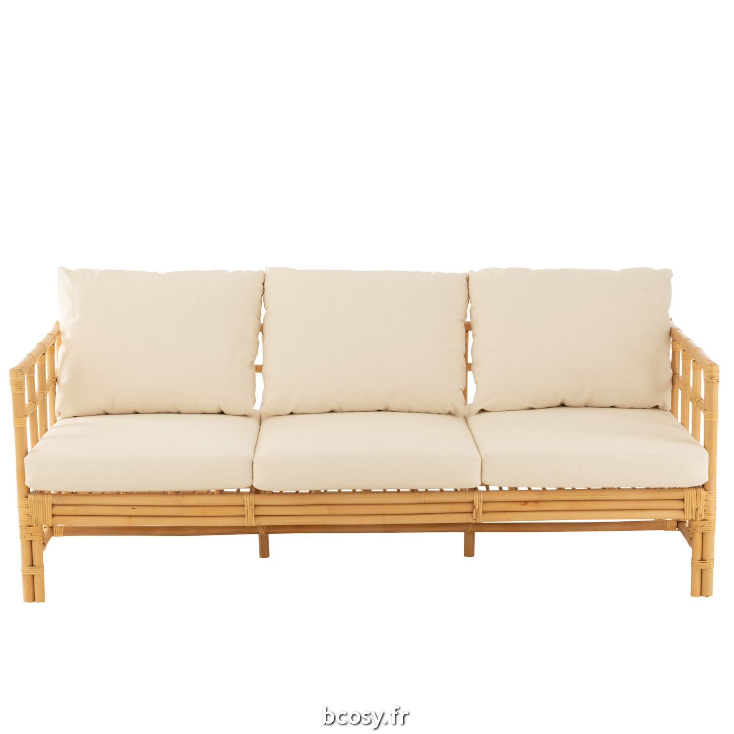 J-Line Sofa Elise-Coussin 3 Personnes Rotin-Textile Naturel-Blanc 43779