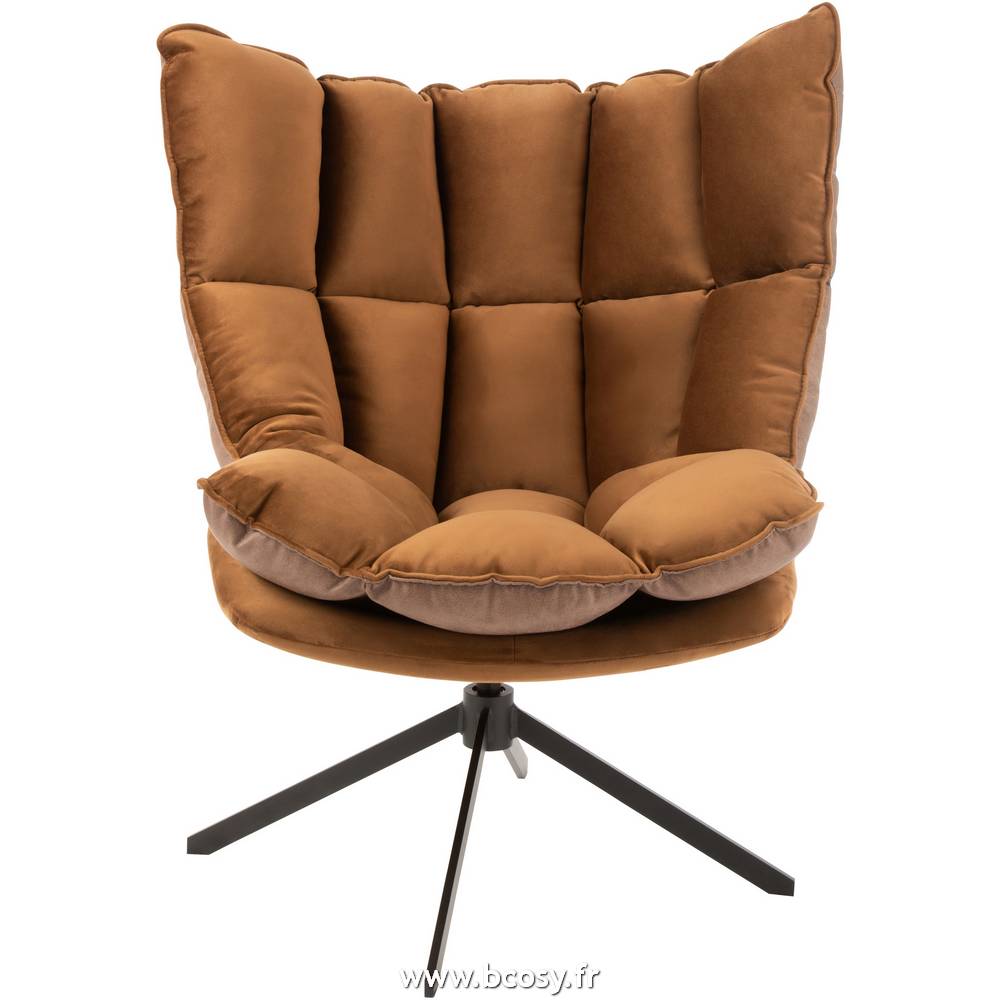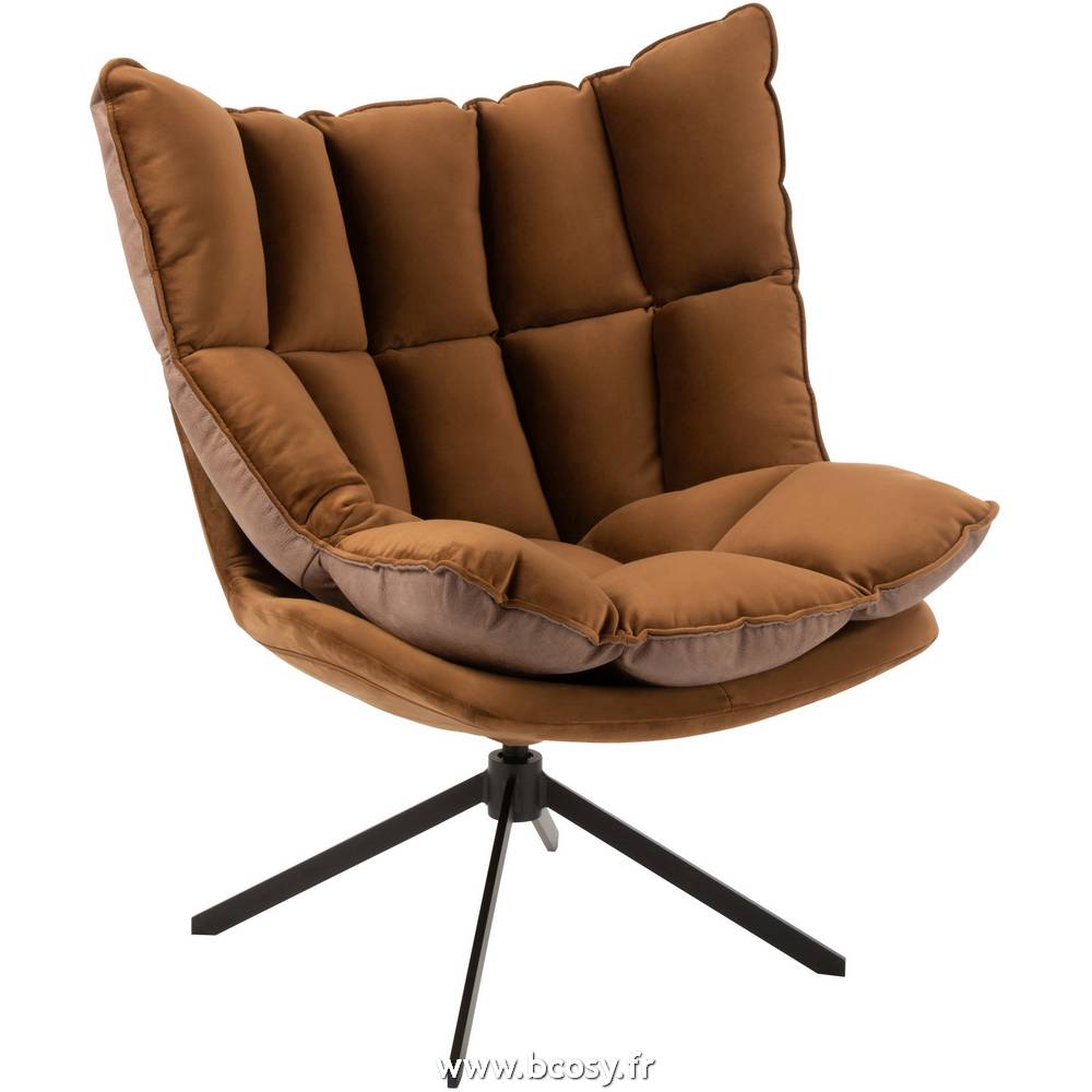 J-Line by Jolipa Chaise Relax Coussin Sur Pied Textile/Metal Marron