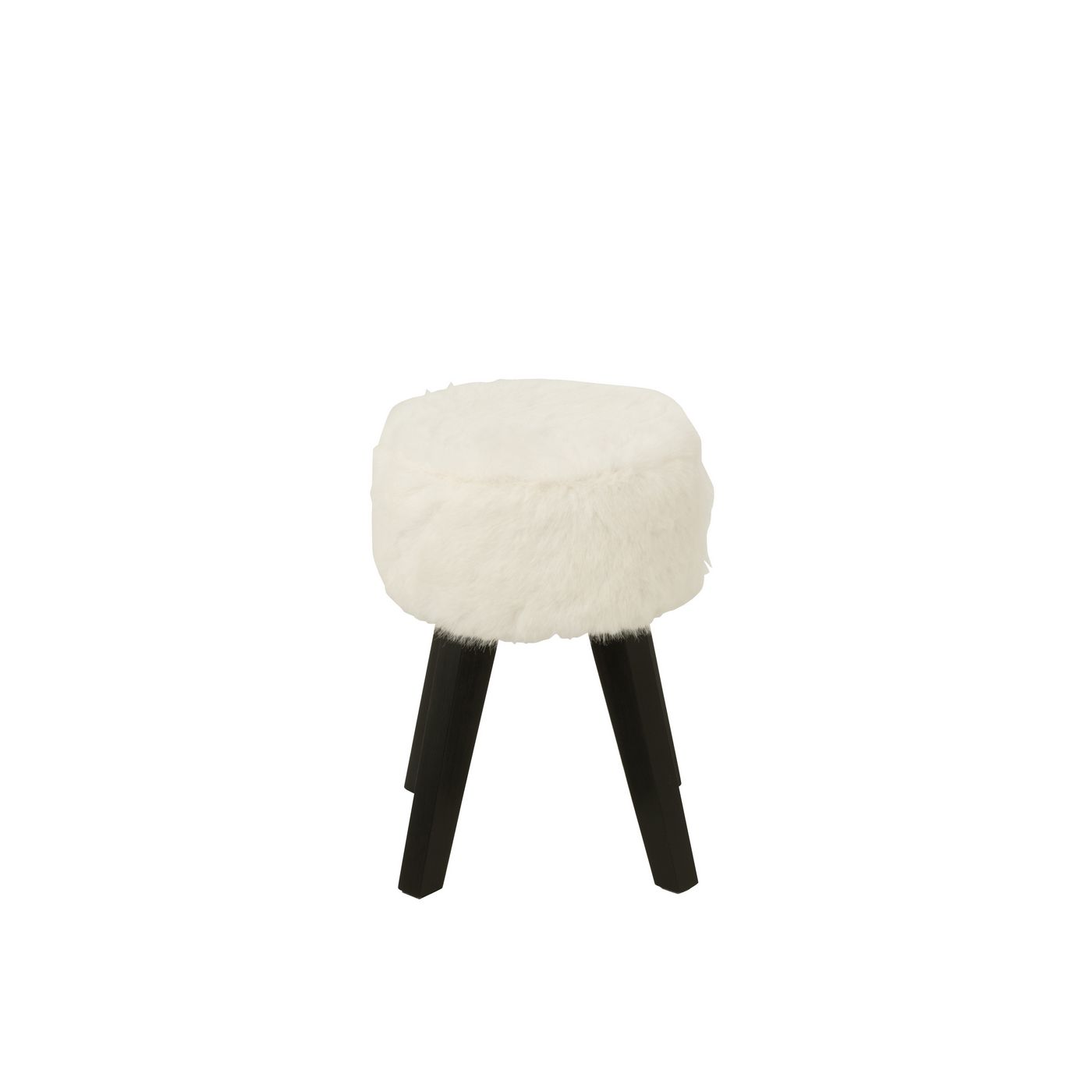 J-Line Tabouret Fur With Wooden Legs Bois Blanc L30xB30xH40 cm 55953