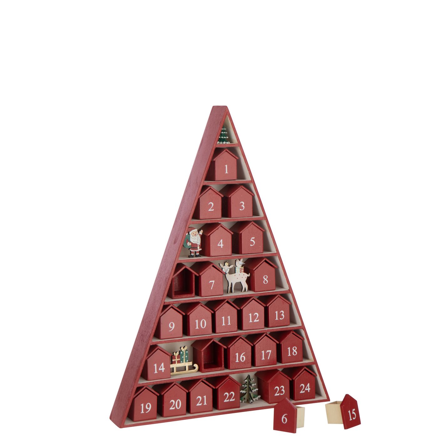J-Line Arbre-House Advent Calendar Contreplaqué Rouge Noël L32xB6xH45 cm 56888