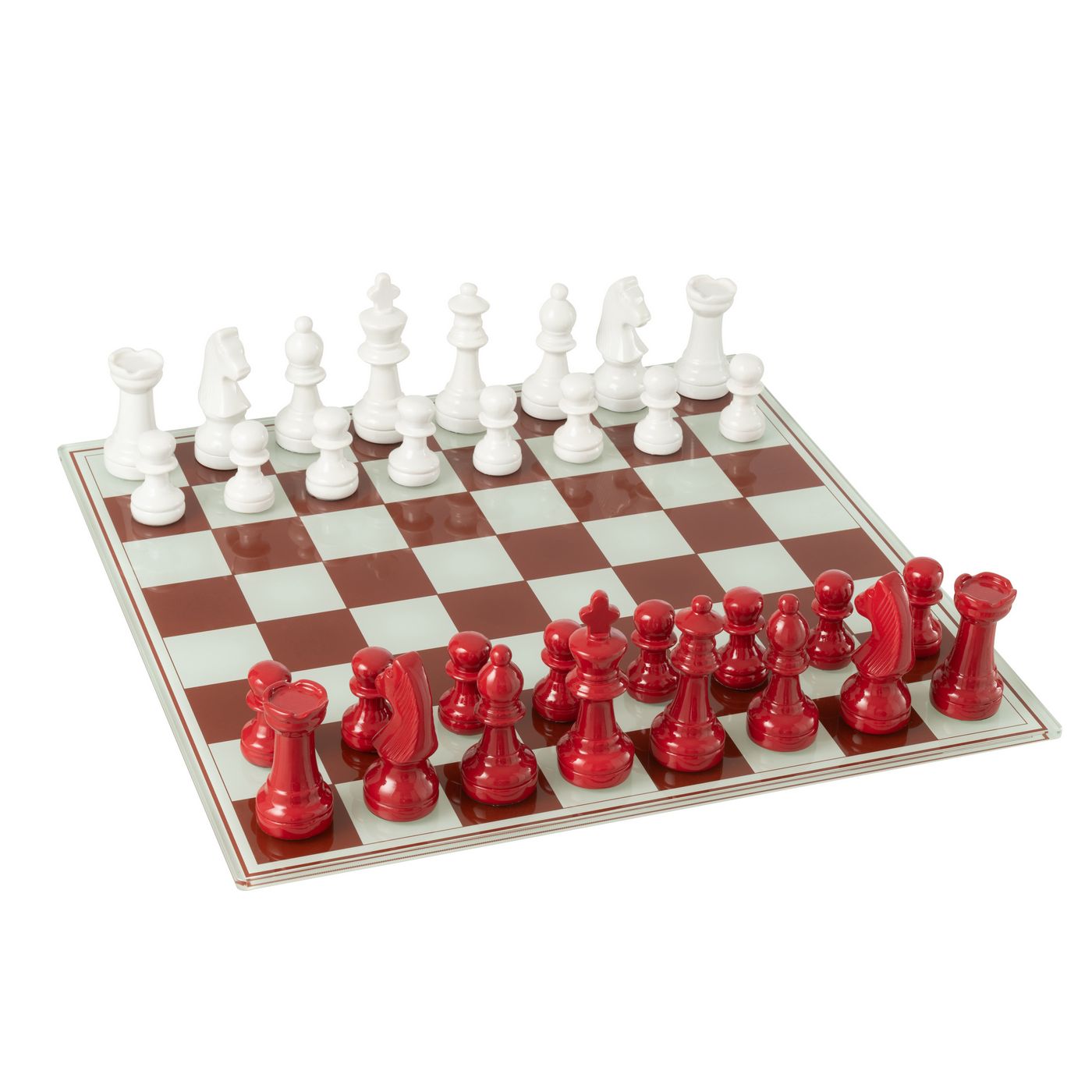 J Line Schach-Set Brett Polyresin Weiß/Weihnachtsrot