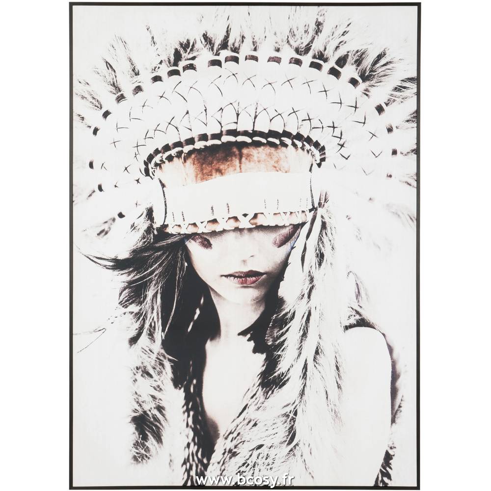 Jolipa Cadre Femme Indienne Bois Canevas Gris