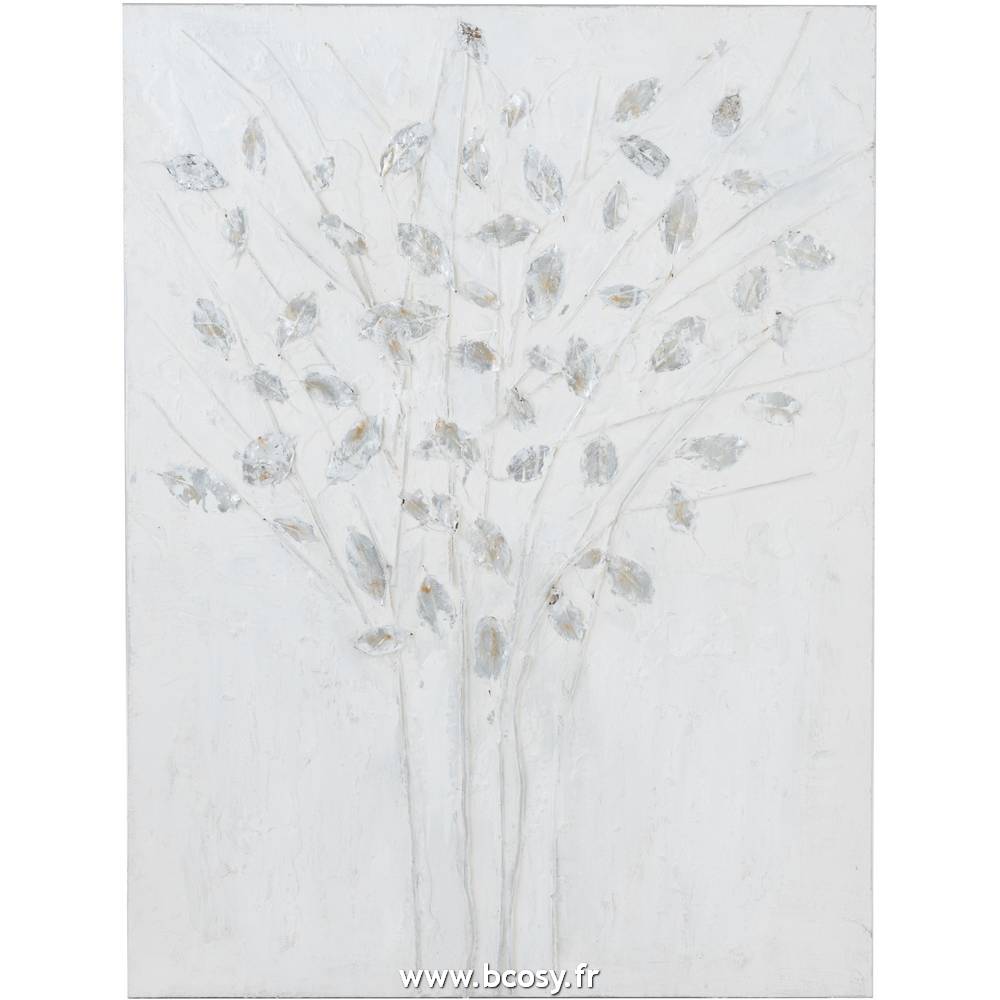 J-Line by Jolipa Peinture Branches Canevas/Bois Blanc/Argent