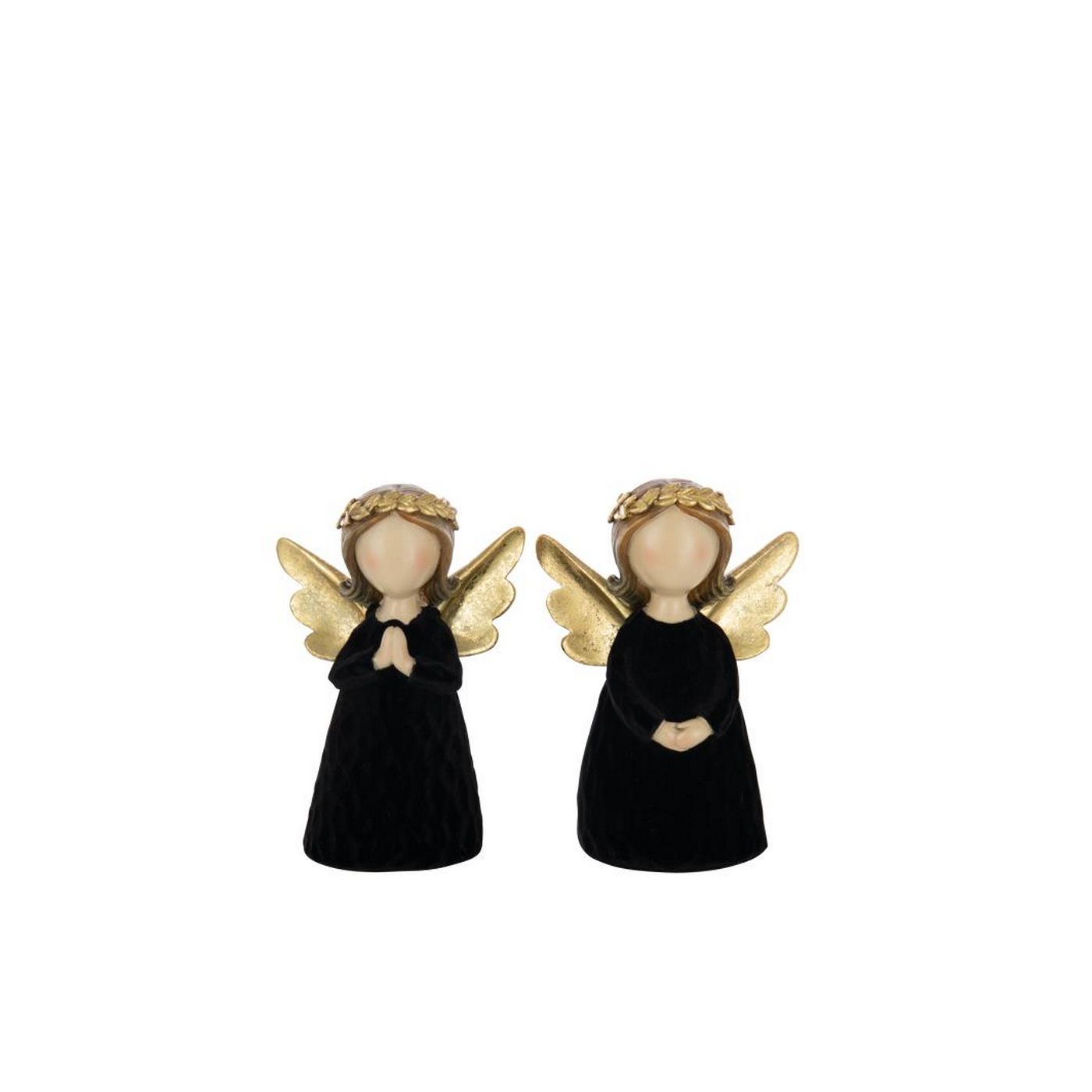 J-Line Ange Velours Polyrésine Noir Medium L11xB7xH17 cm 59582 Assortiment de 2 pcs