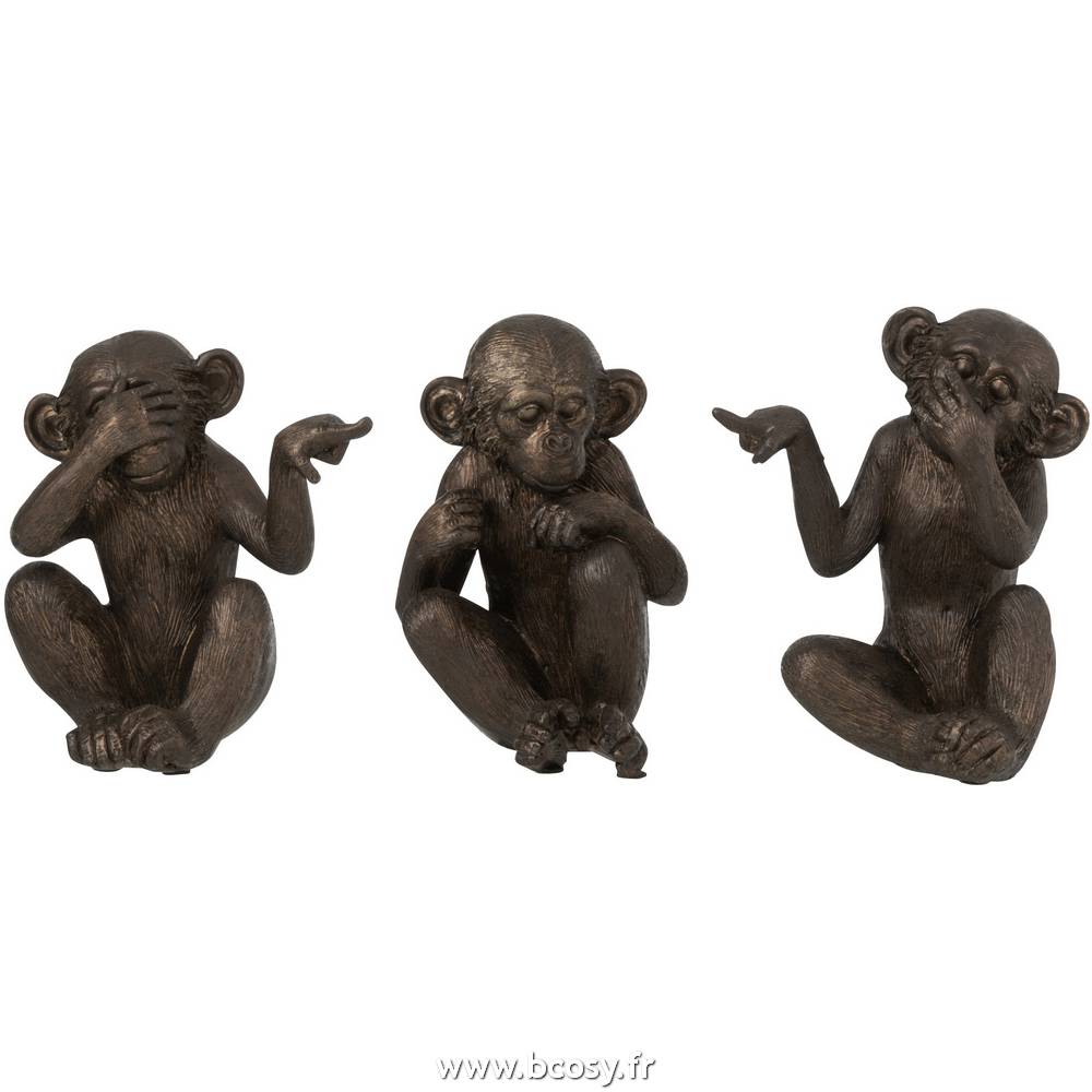 J-Line by Jolipa Singe Entendre/Voir/Se Taire Resine Marron Small Assortiment De 3