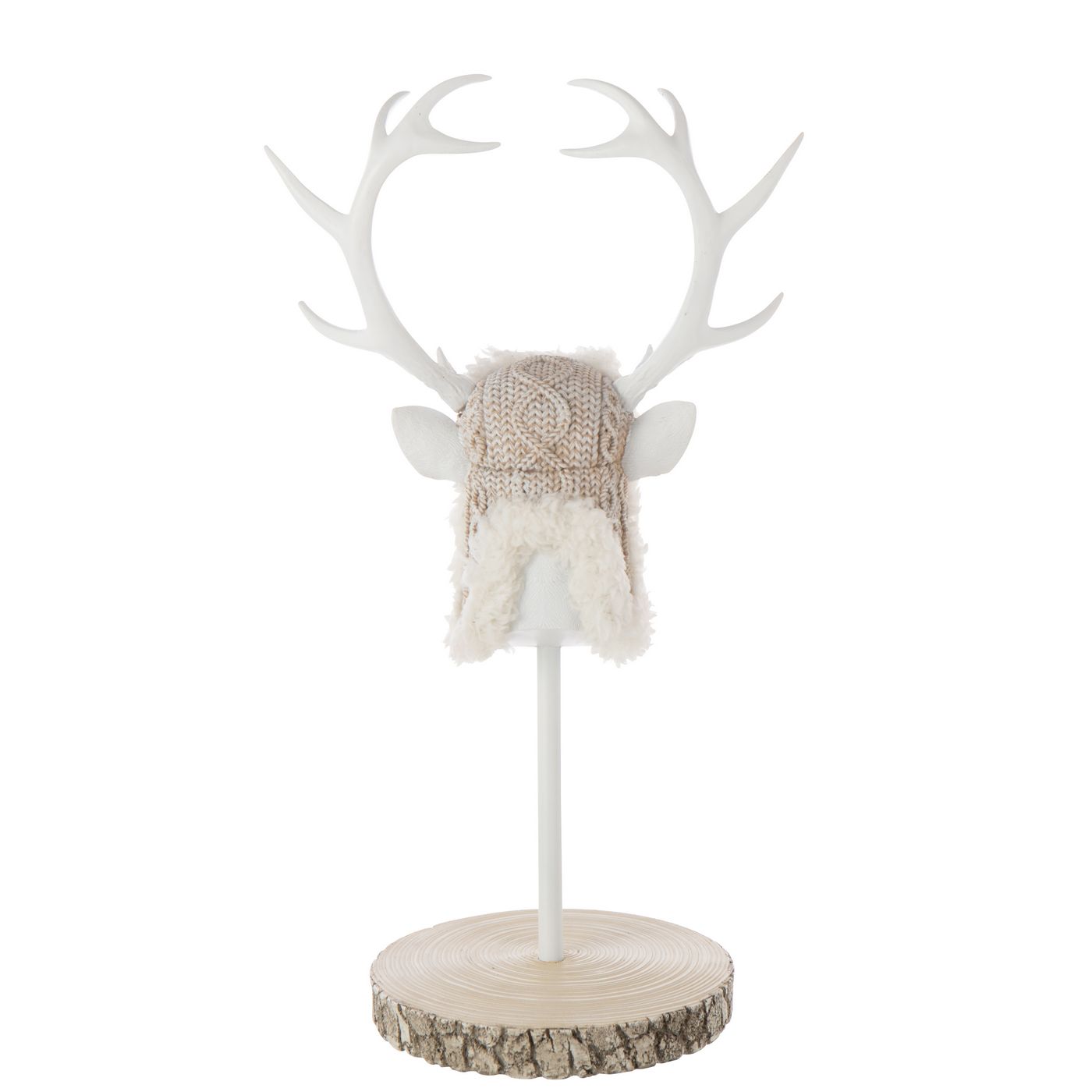 J-Line Cerf Sur Base Fourrure Poudre De Chaux Écru-Blanc L28xB21xH53 cm 55530