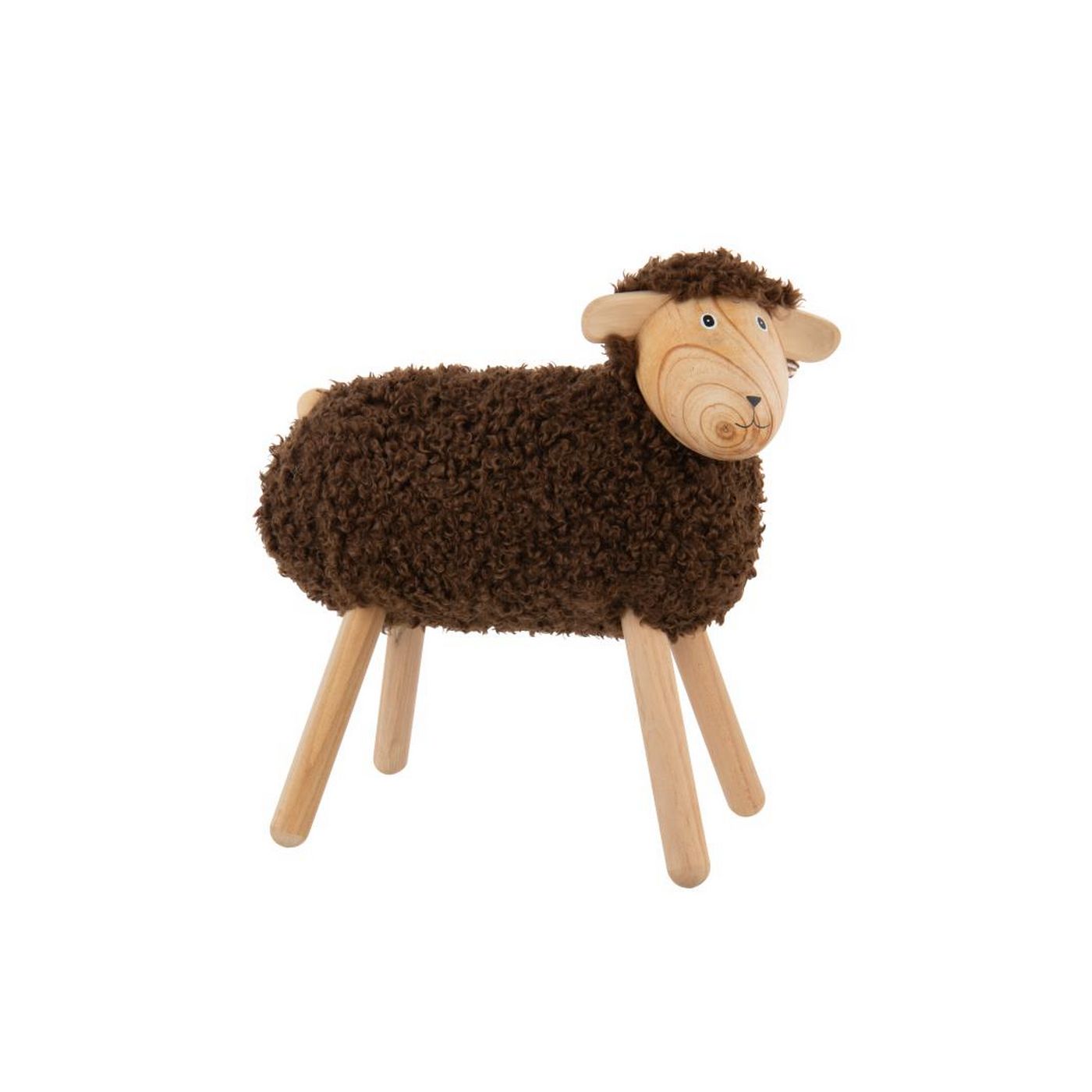 J-Line Mouton Décoratif Bois De Hêtre-Fausse Fourrure Naturel-Marron Foncé Large L20xB40xH45 cm 55900
