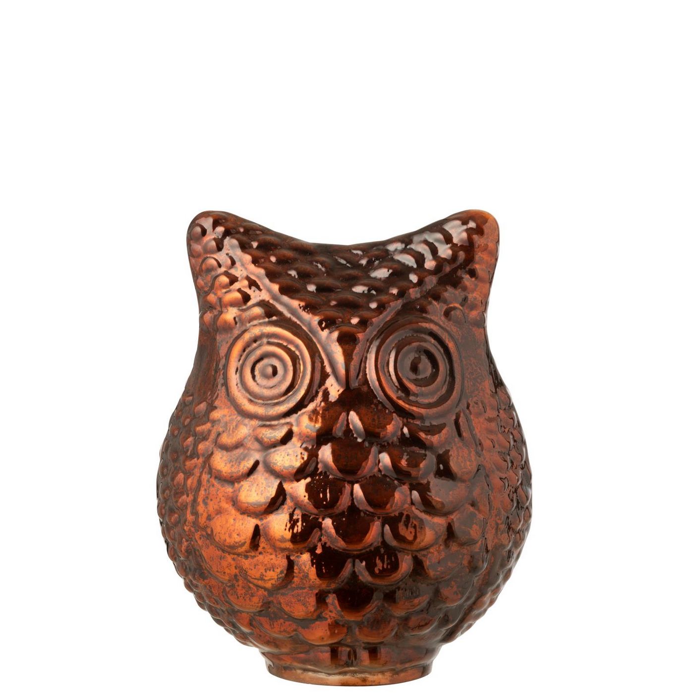 J-Line Hibou Verre Rouille L20xB20xH25 cm 58585