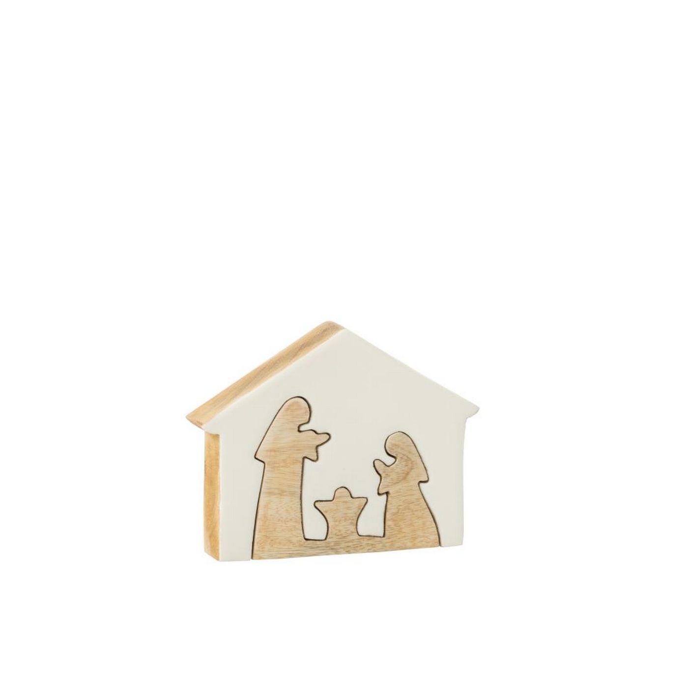 J-Line Crèche Dans Maison Bois De Manguier Blanc-Naturel Medium L14xB4xH17 cm 55713