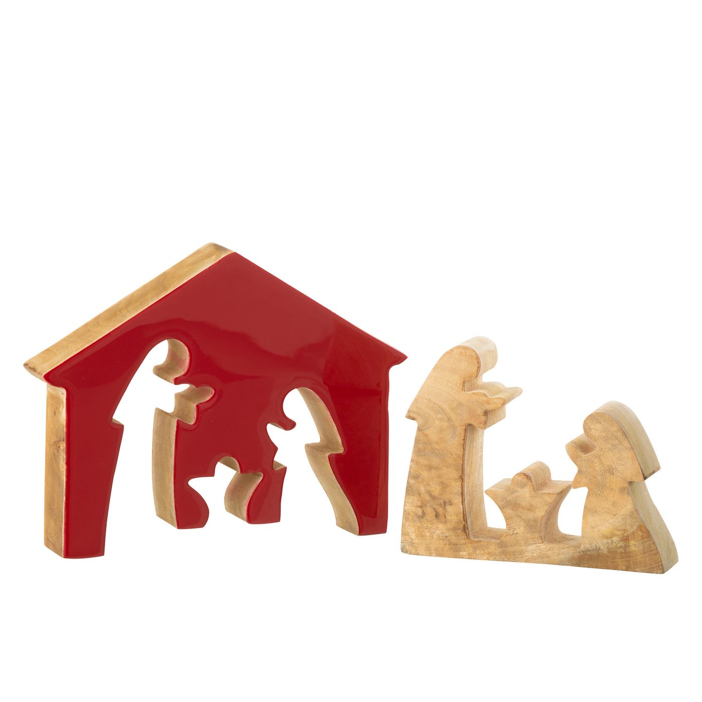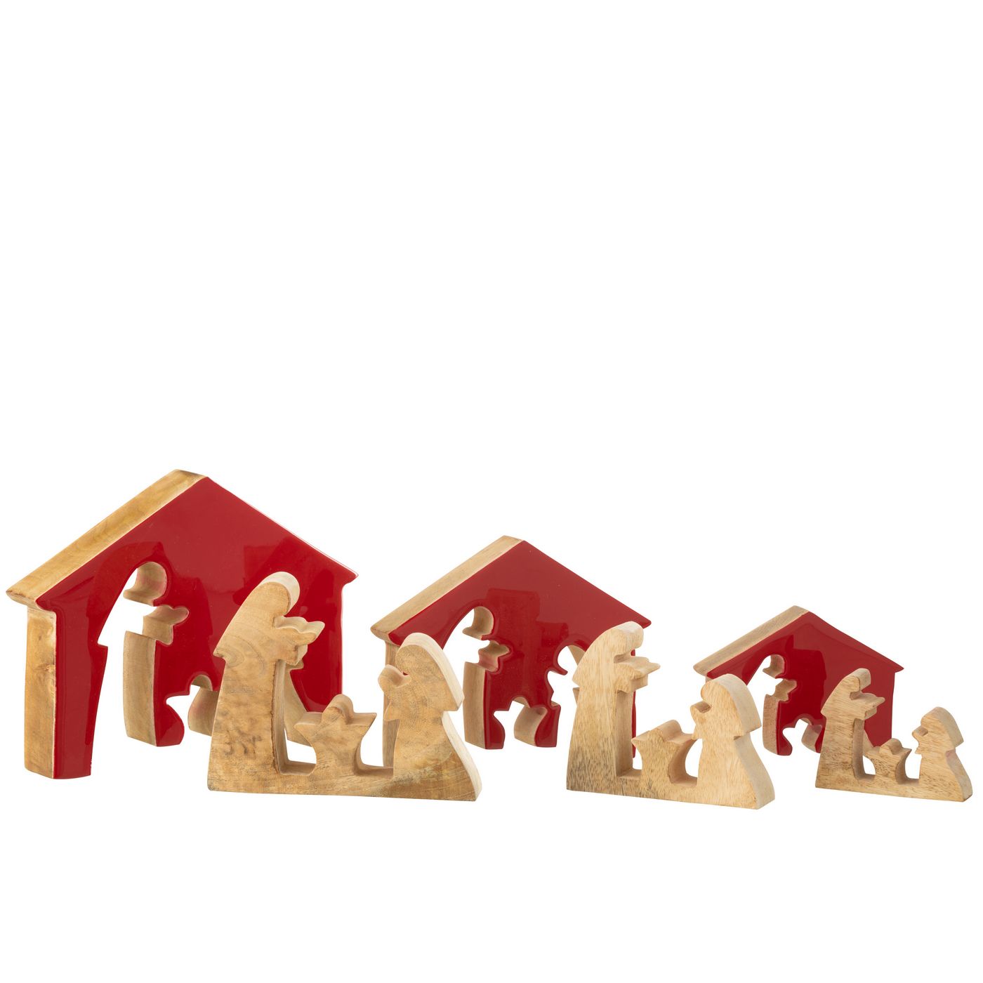 J Line Presepio In House Legno Di Mango Rosso Natale/Naturale Large