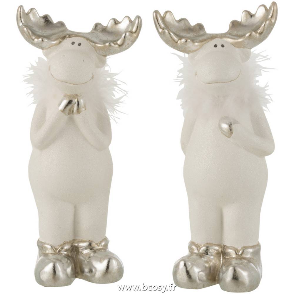 J Line Rentier Keramik Weiß/Silber Large 2 Sortiert