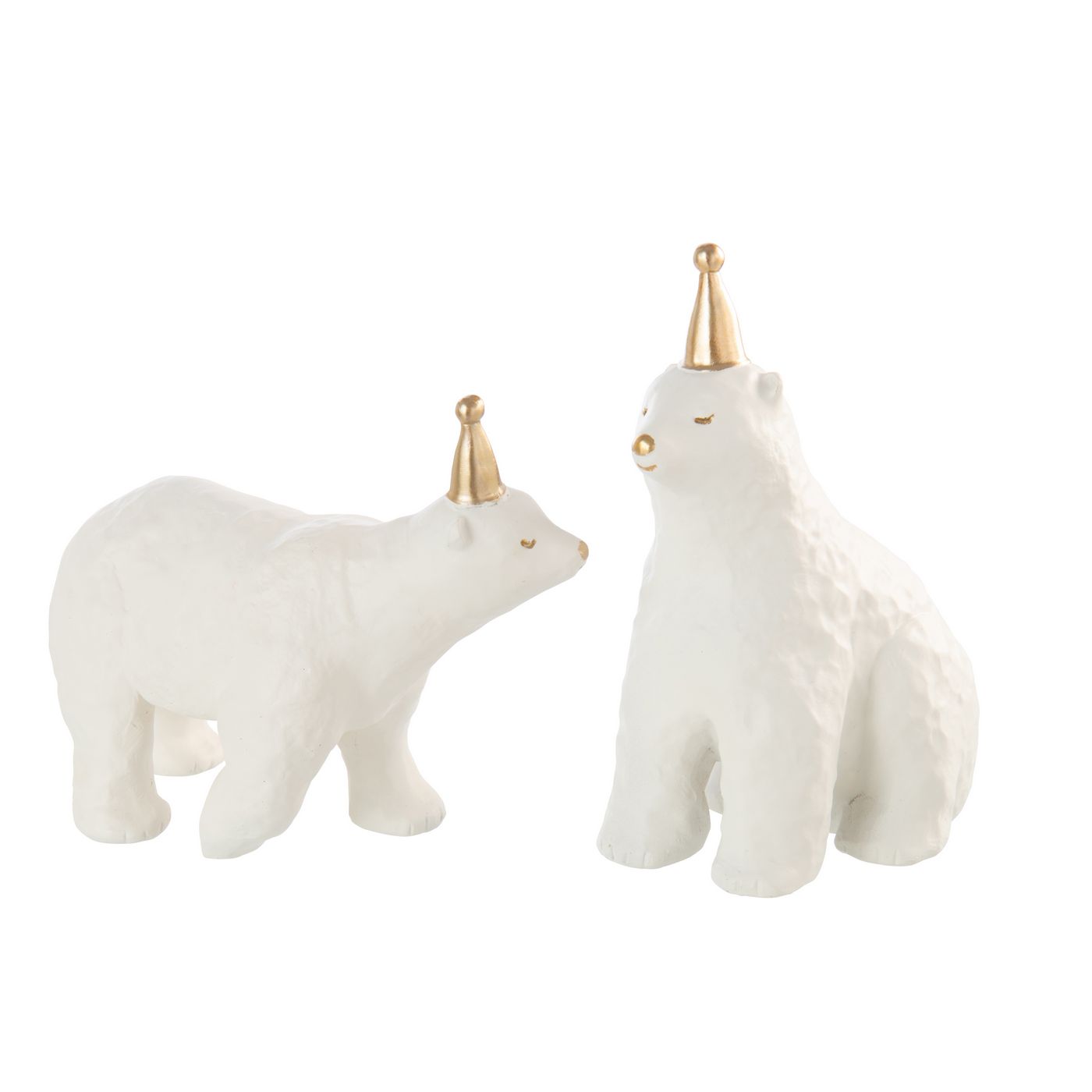 J-Line Ours Polaire Chapeau De Fête Poudre De Chaux Blanc-Doré L17xB12xH25 cm 55611