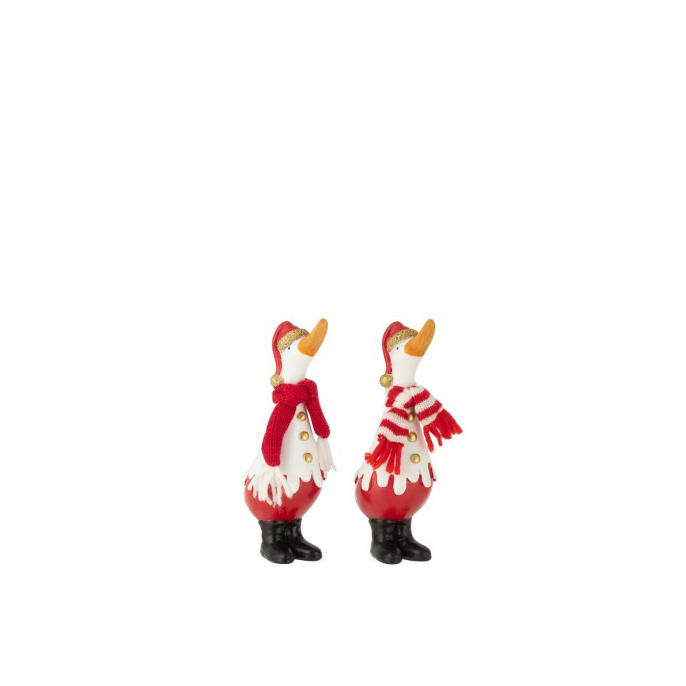 J-Line Canard Hiver Polyrésine Blanc-Rouge Small L5xB6xH17 cm 59586 Assortiment de 2 pcs