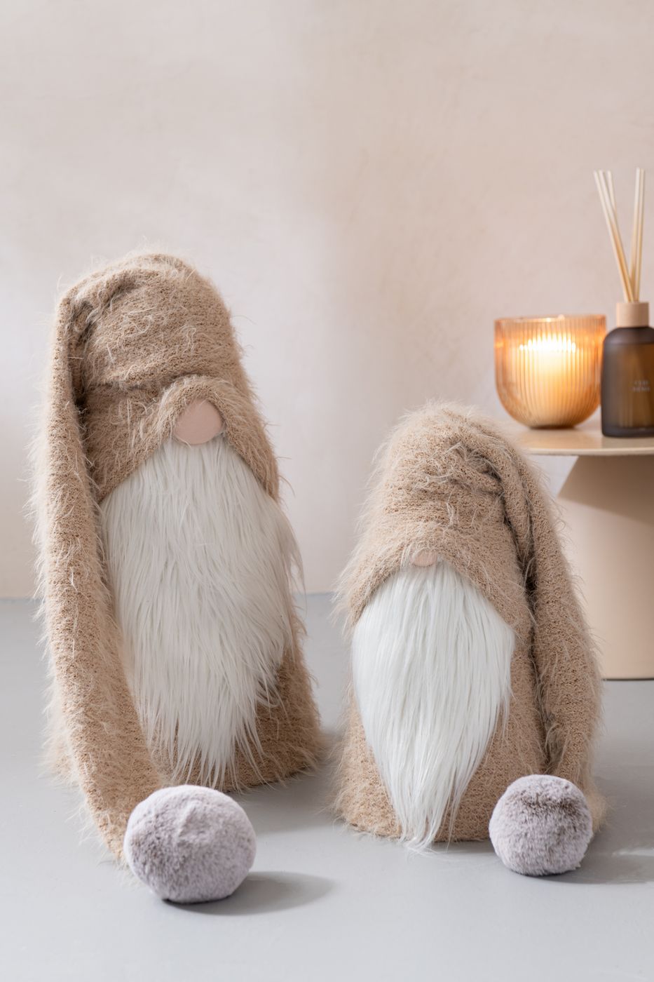 J-Line Père Noël Hiver Polyester Beige-Blanc Small L22xB22xH44 cm 59500