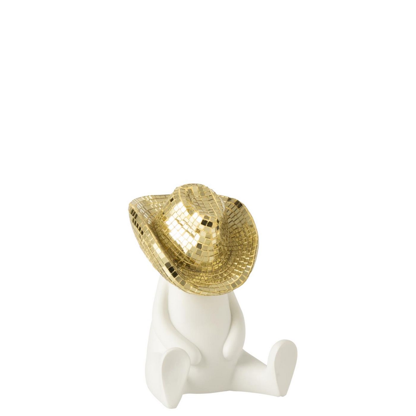 J-Line Cowboy Mosaïque Polyrésine Blanc-Doré L14xB14xH19 cm 55329