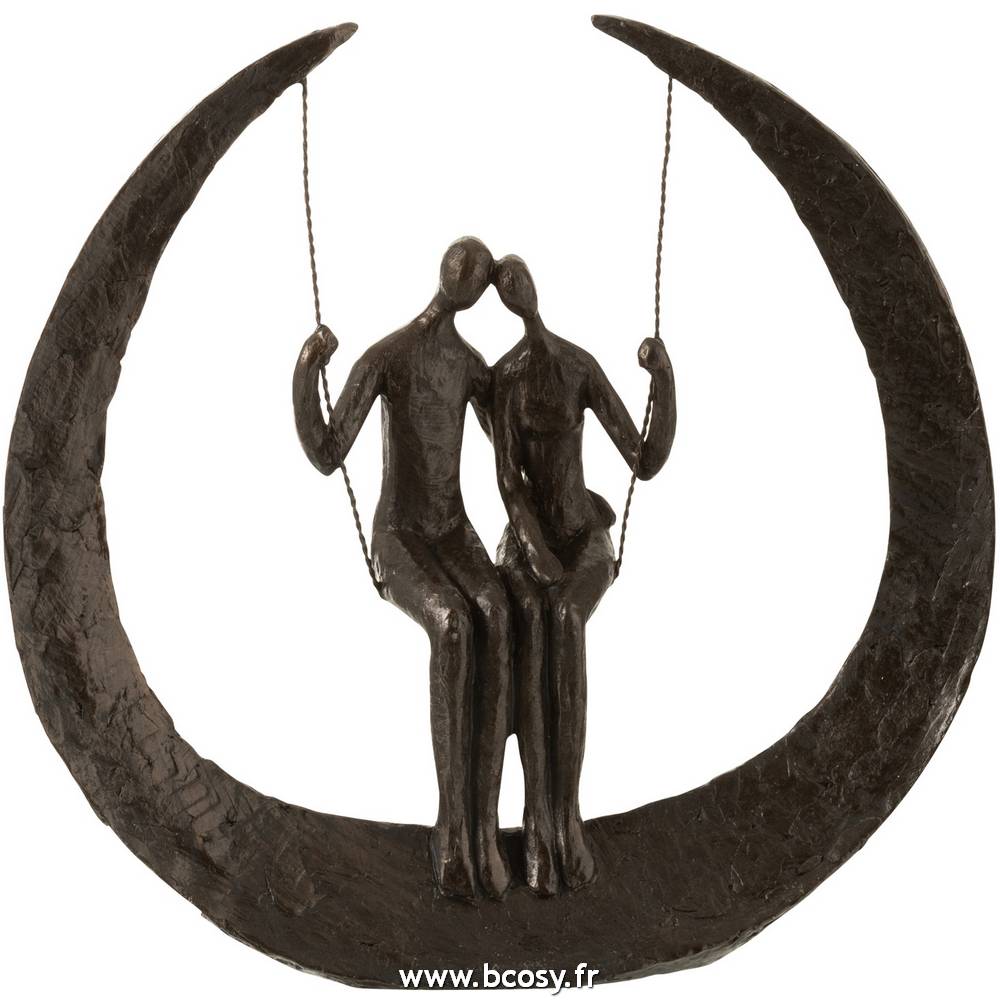 Jolipa Couple Sur Balancoire Resine Marron Fonce